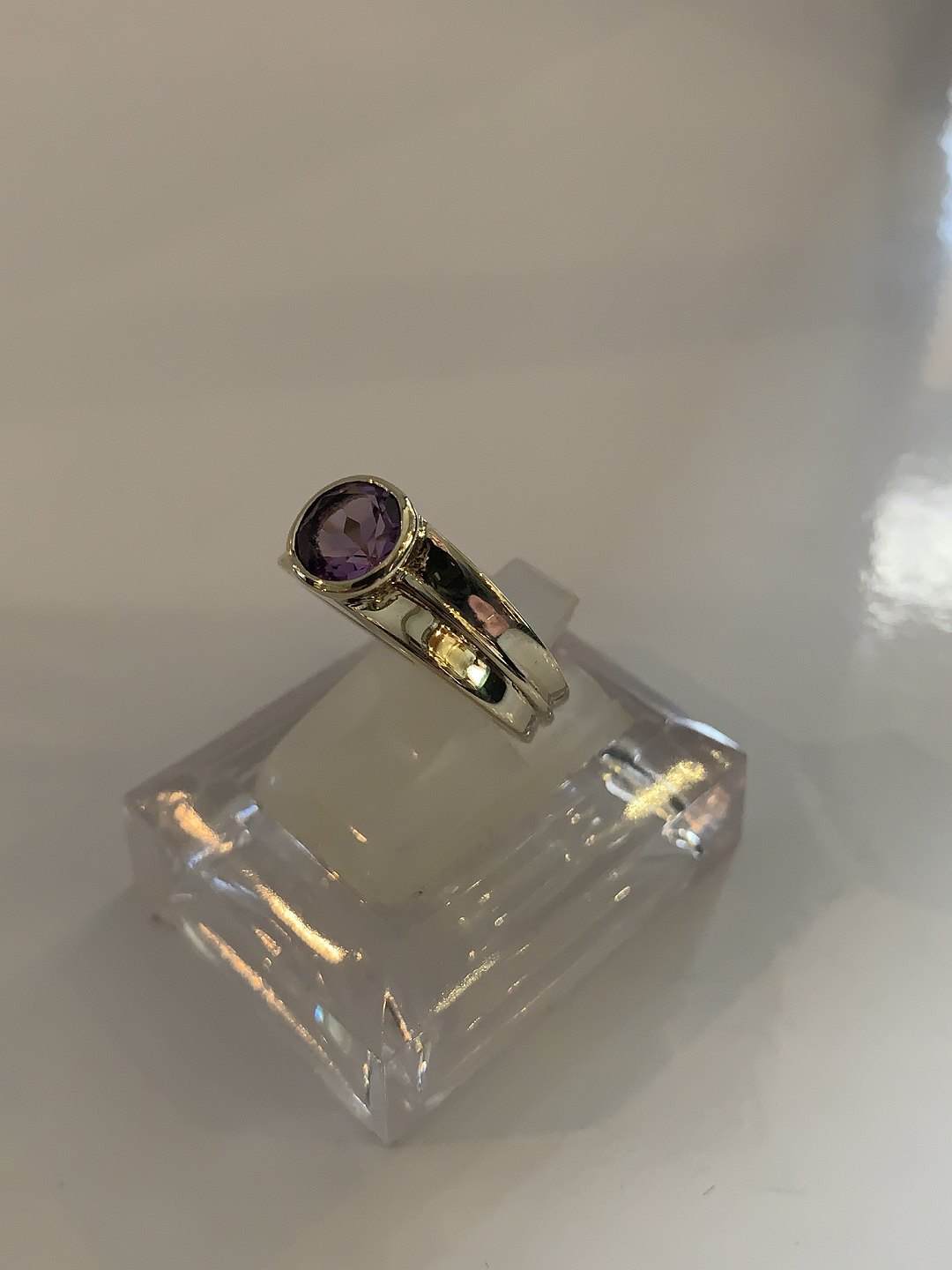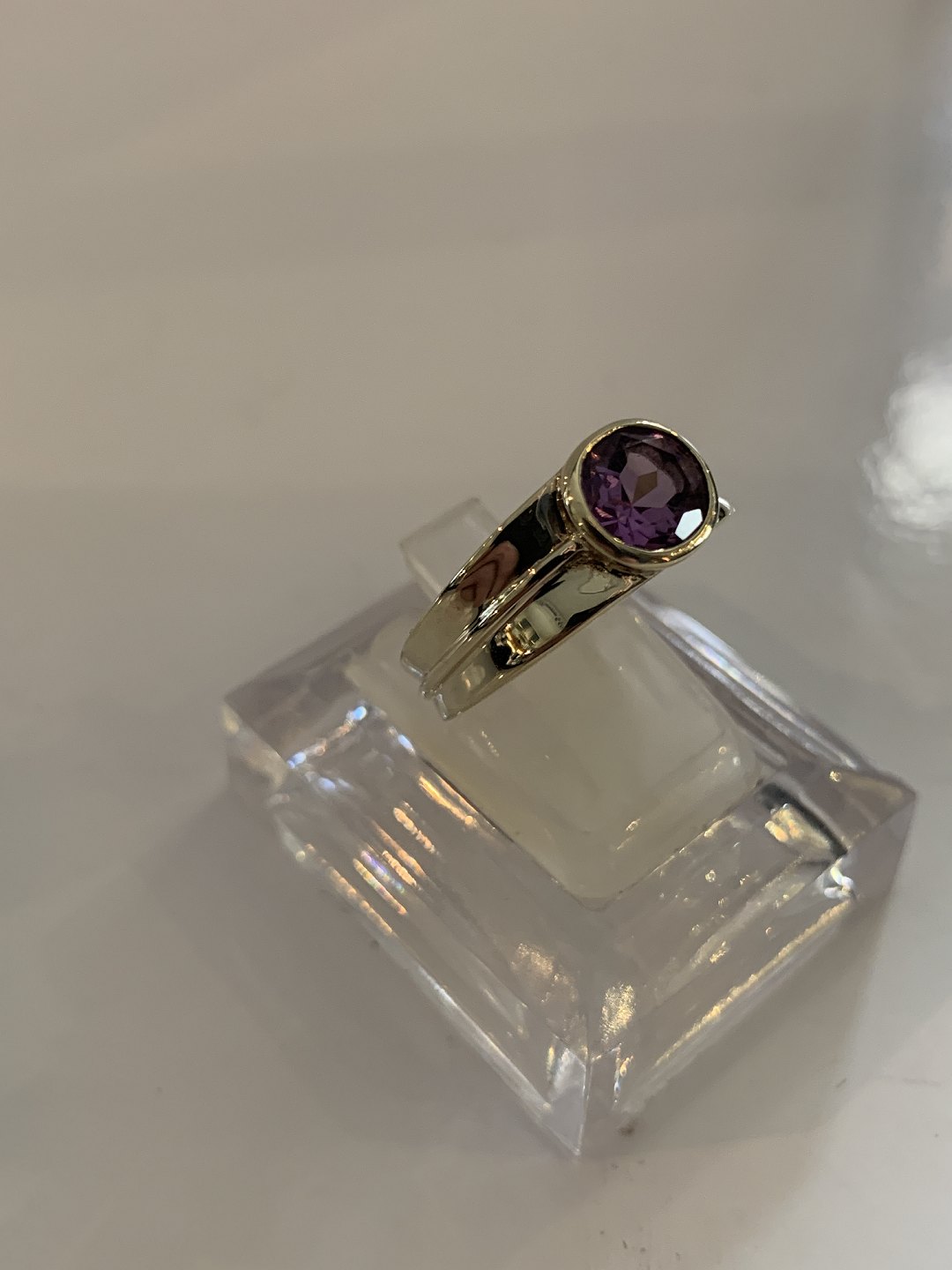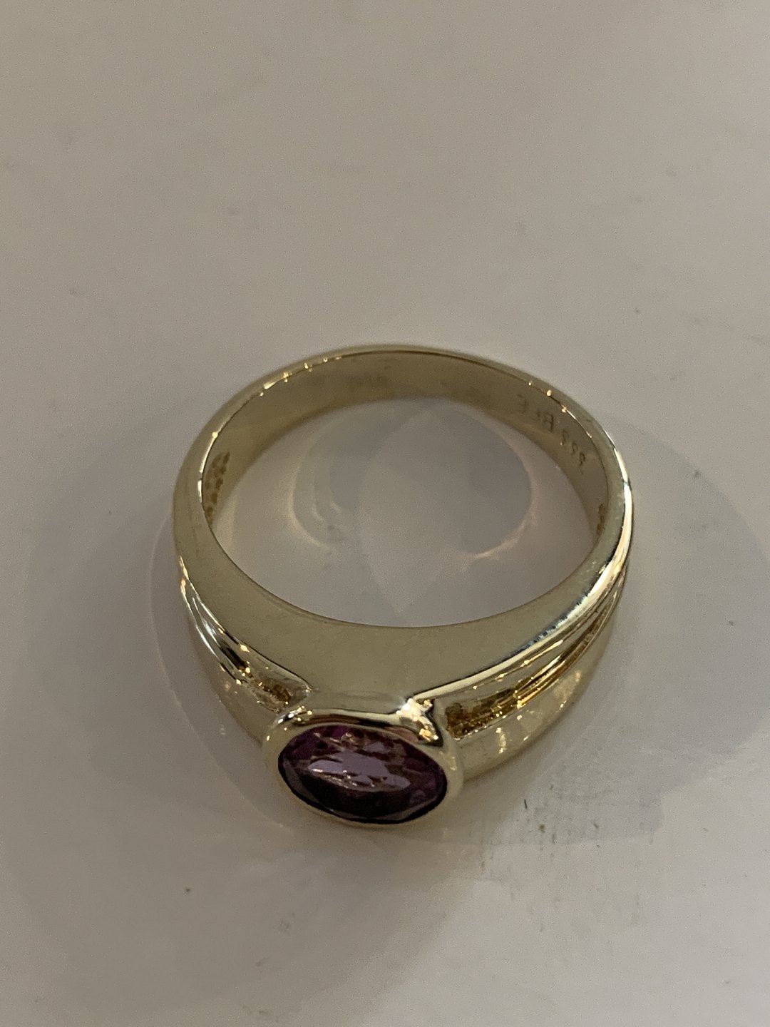Vintage Damering med lilla sten 8 Karat Guld