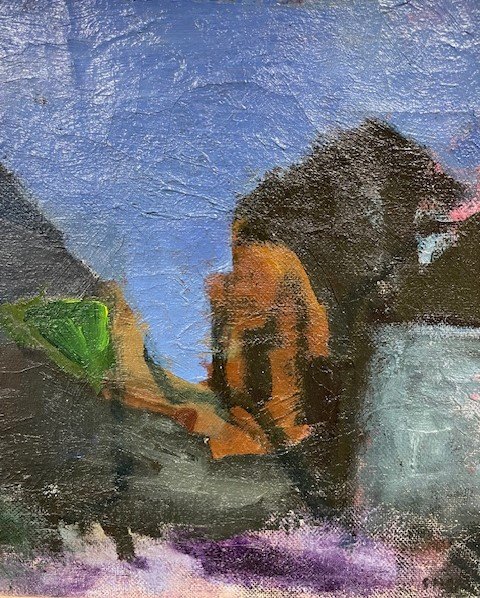 Motiv fra Færøerne, olie på lærred. Med ny naturramme.