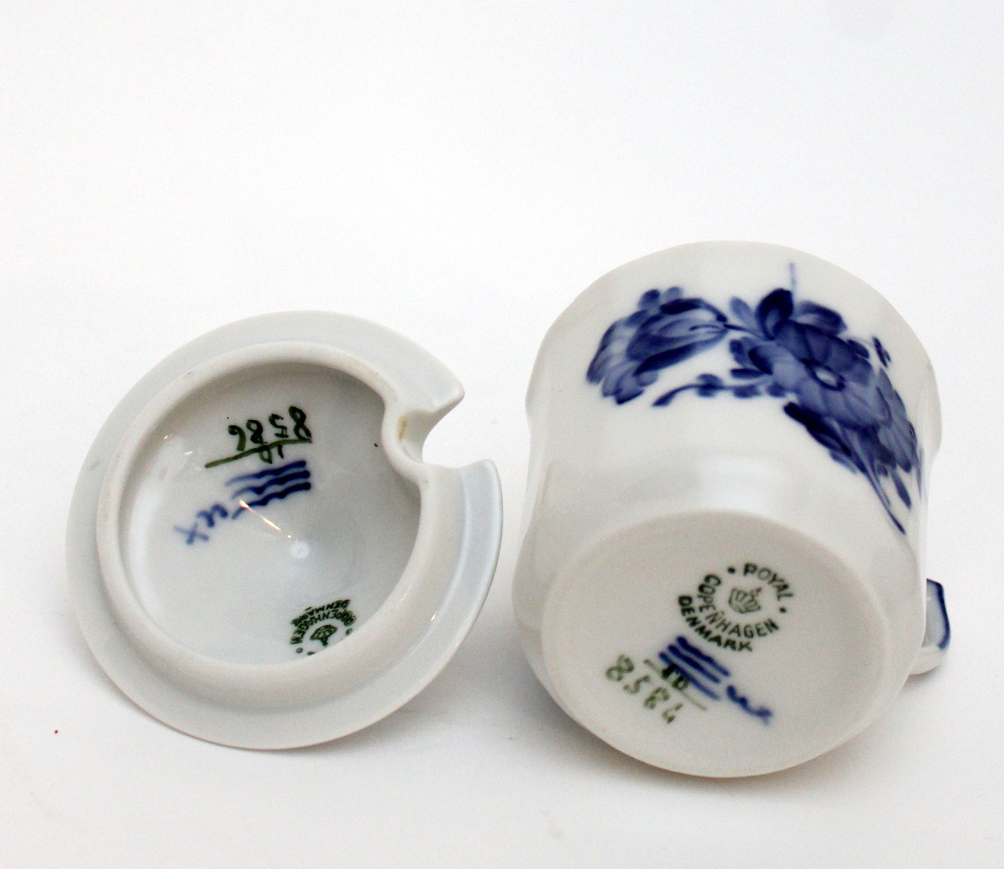 Royal Copenhagen, Blå Blomst kantet, Cremekop eller sennepskop med låg. Nr. 10/8586. Højde 9,5 cm. Diameter 6,5 cm. I. sortering. Fin stand. Pris: 375 kr. Lager: 1