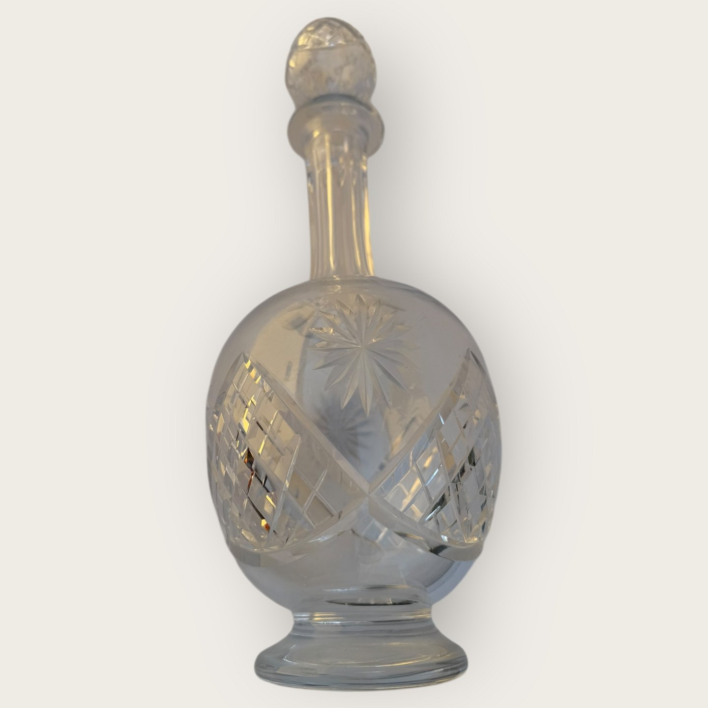 Karaffel med mange slibninger, 31cm høj, *lille smule kalkaflejring i bunden ellers pæn stand*