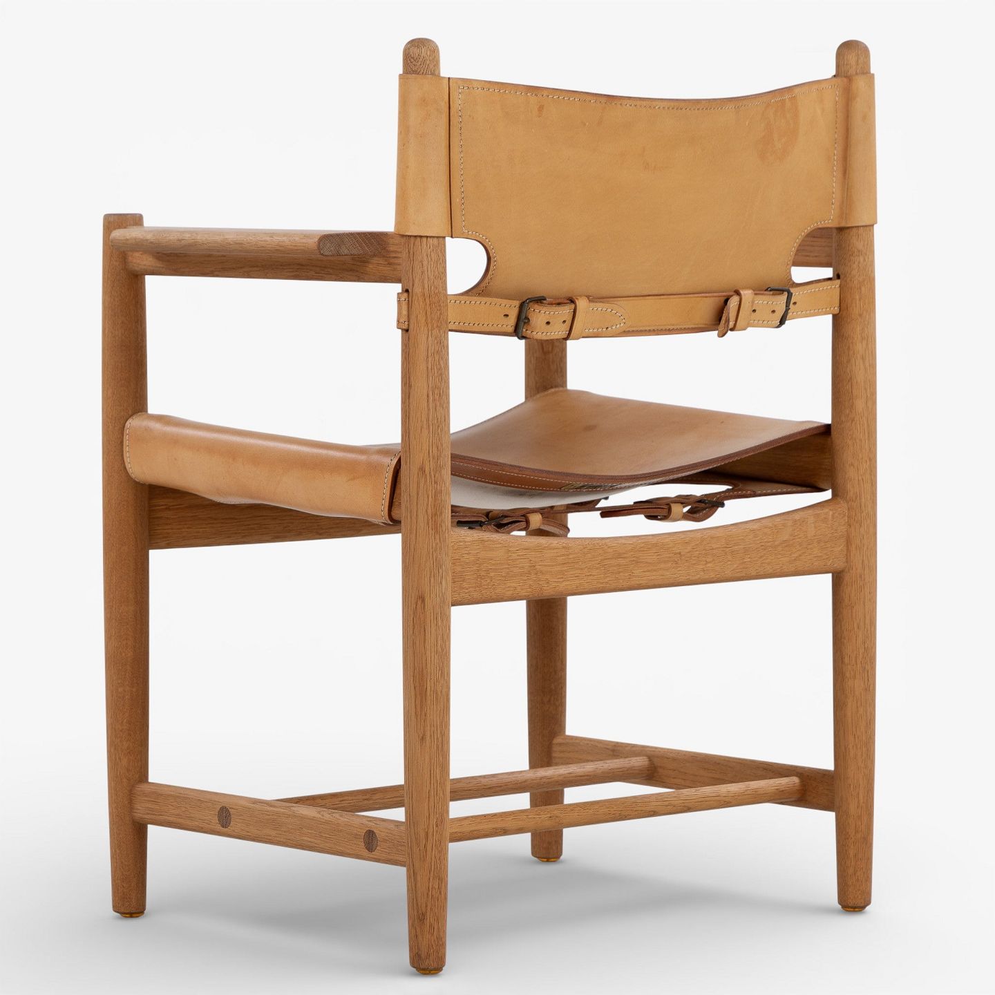 BM 3238 - 'Jagtstol' i patineret egetræ og kernelæder m. armlæn. Mærket fra producent.