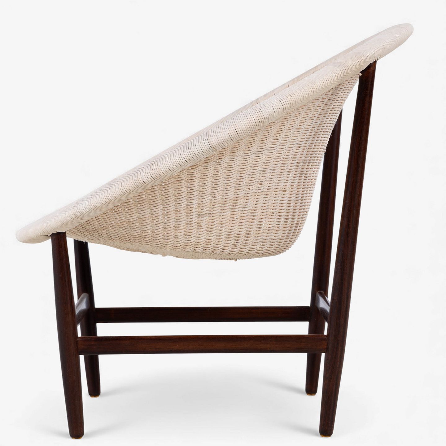 Sjælden 'Basket Chair'-lænestol i patineret palisander med sæde i nye peddigrør. Formgivet i 1950.