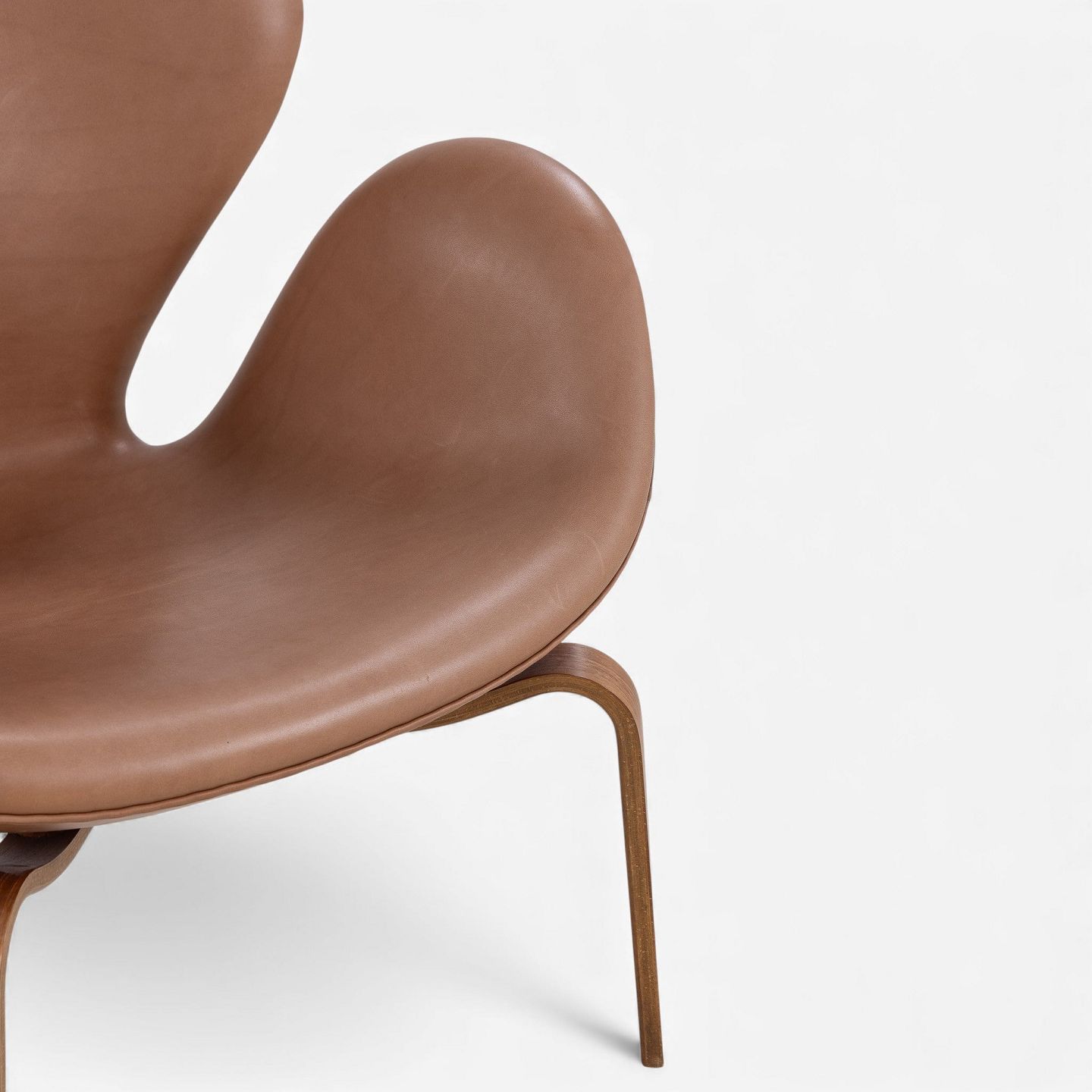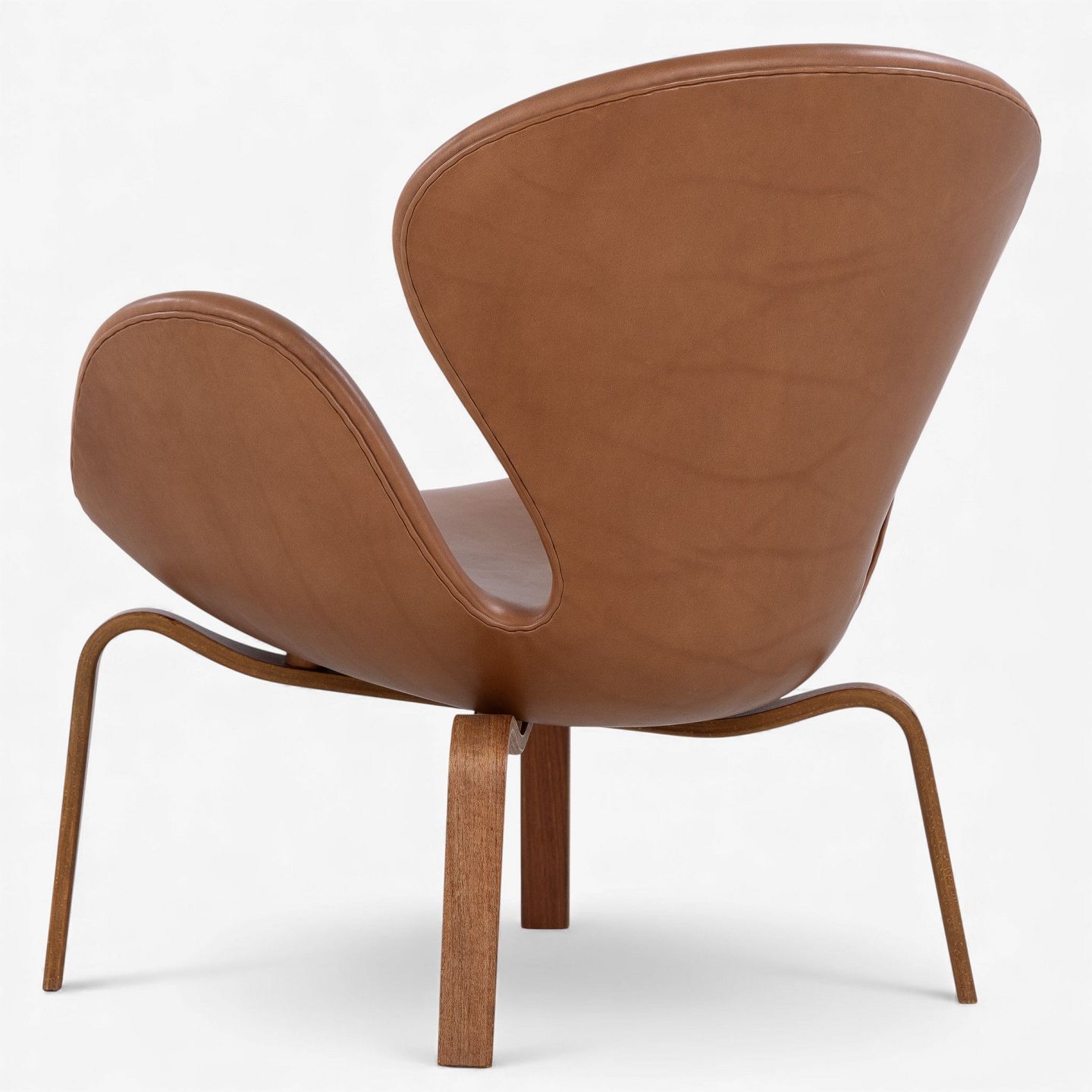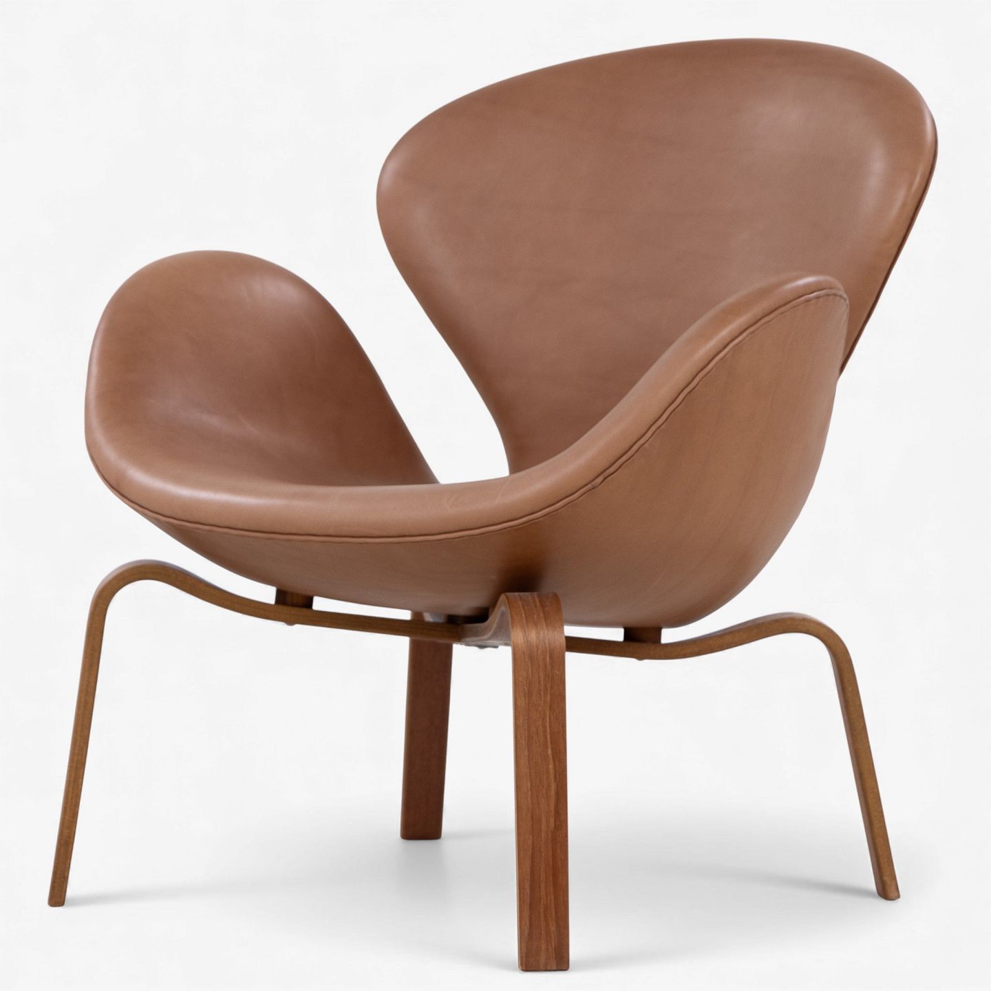 AJ 4325 - 'Svanen'-lænestol i nyere cognac-farvet anilinlæder med stel i træ. Stemplet fra producent.