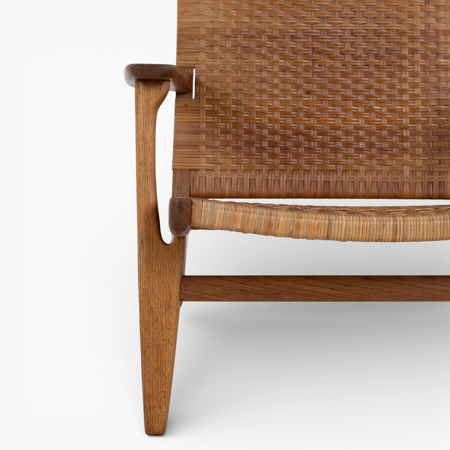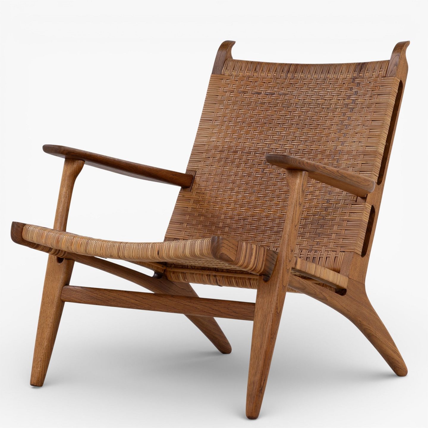 CH 27 - Lænestol i patineret egetræ og sjeneflet. Formgivet i 1949.