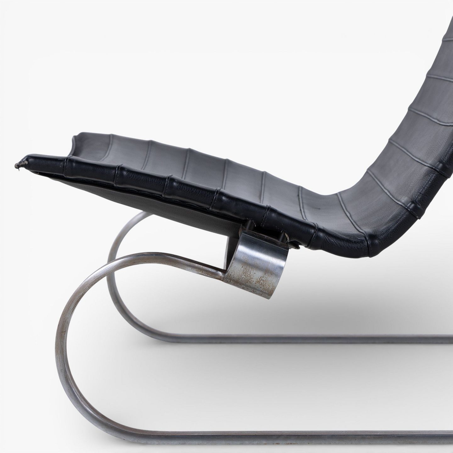 PK 20 - Lænestol i originalt sort læder med nakkehynde og stel af fjederstål. Formgivet i 1968.