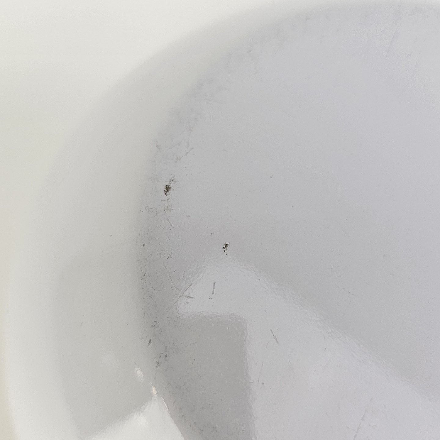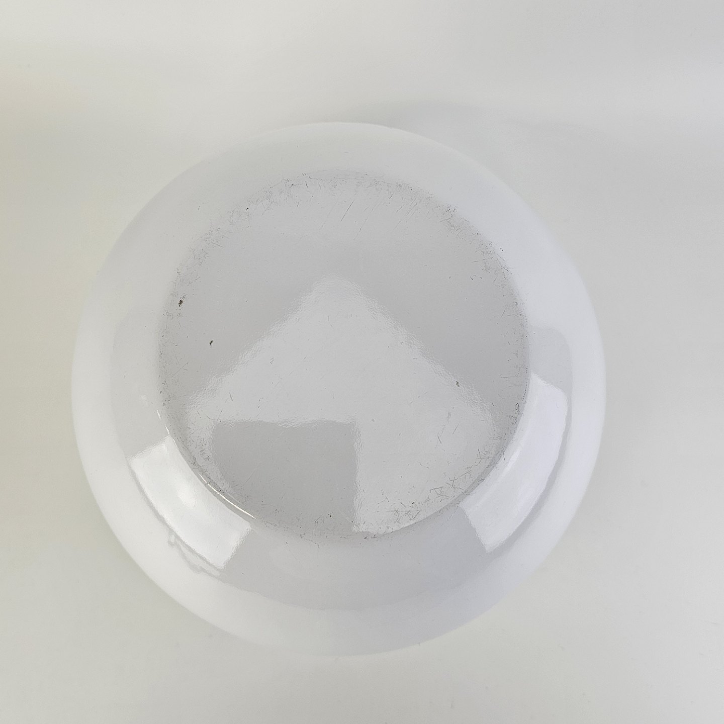 Fremstår med små skrammer i overfladen på indersiden og under bunden