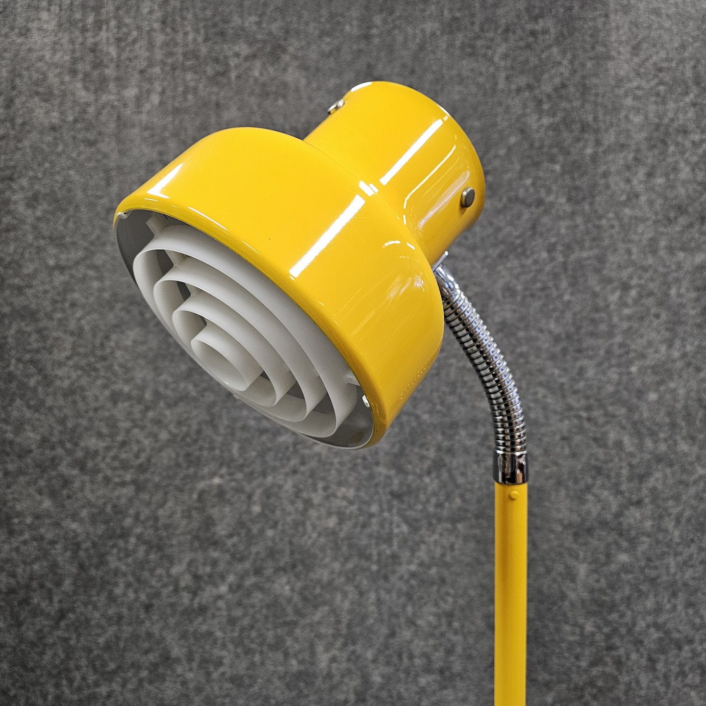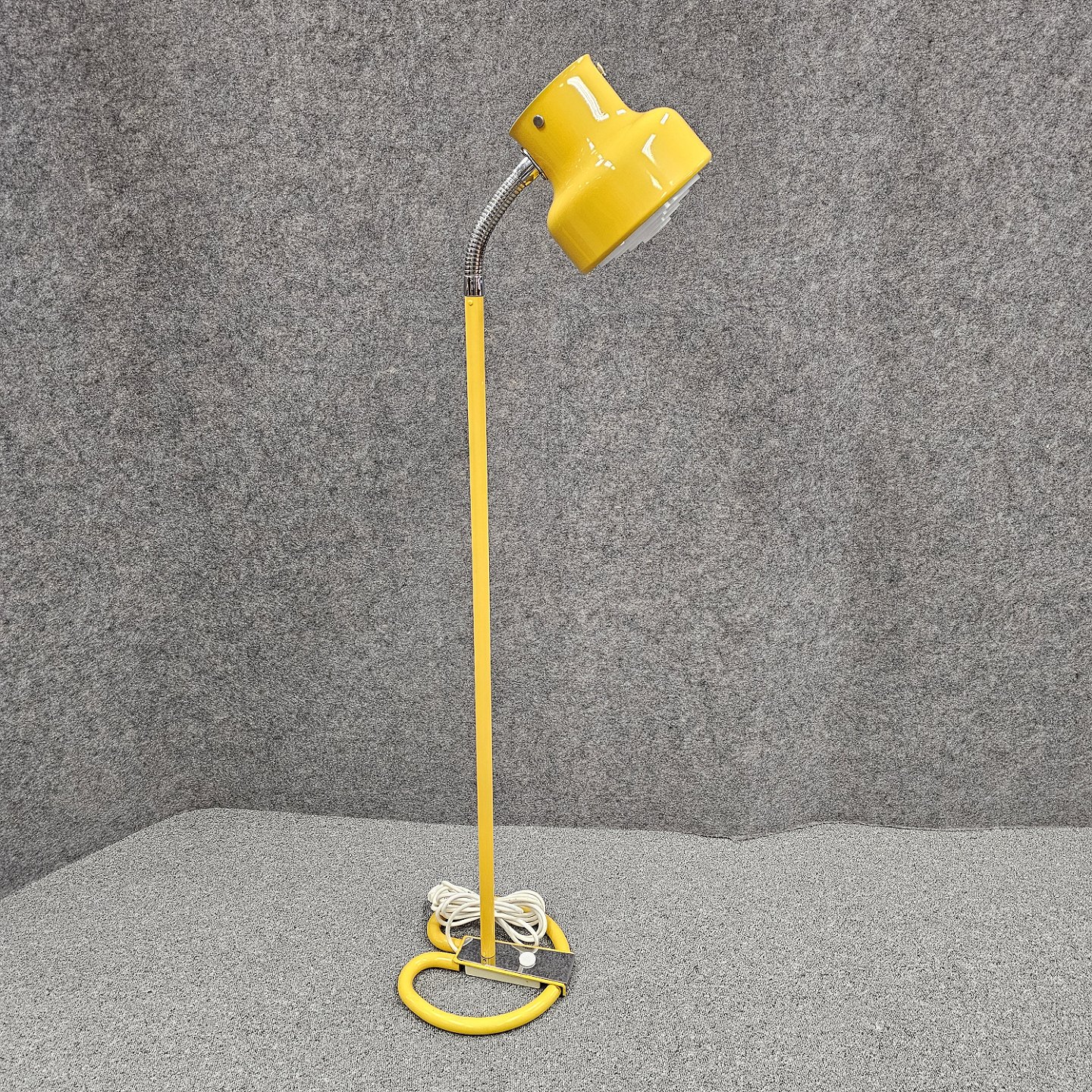 Bumling gulvlampe i gult lakeret metal med justerbar skærm