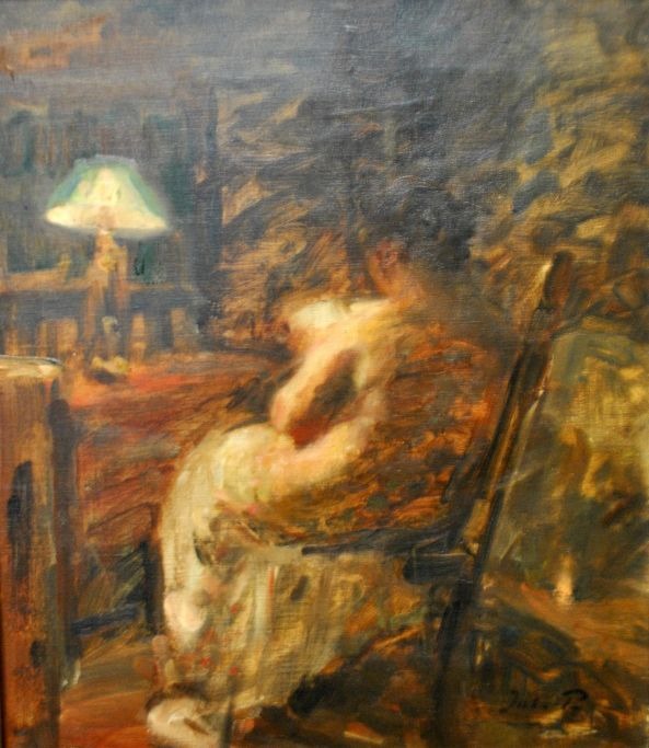 Paulsen, Julius (1860 - 1940) Danmark: Lampelys, interiør.