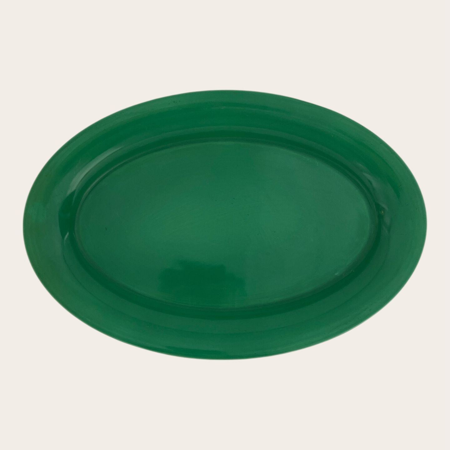 | Royal Copenhagen, Aluminia, Tallerken, Grøn #624, 1. sortering, 33,5cm lang, 22cm, Design Ursula Munch Petersen *Pæn stand med lette brugsspor*