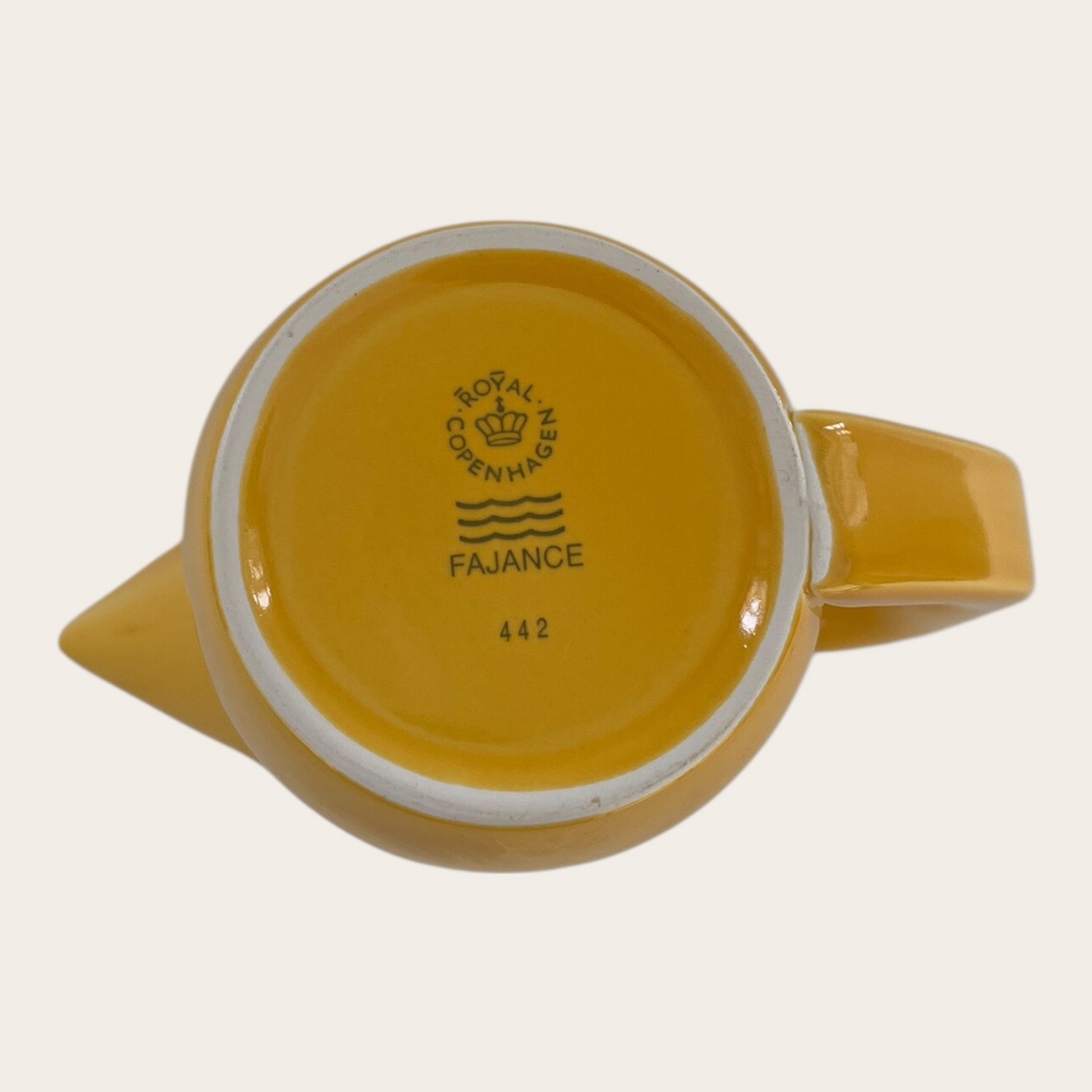 Royal Copenhagen, Aluminia, Ursula, Kande med hank, Gul #442, 1. sortering, 13,5cm høj,17cm bred, Design Ursula Munch Petersen*Pæn stand* ( se også låg til kanden varenr. 629130)