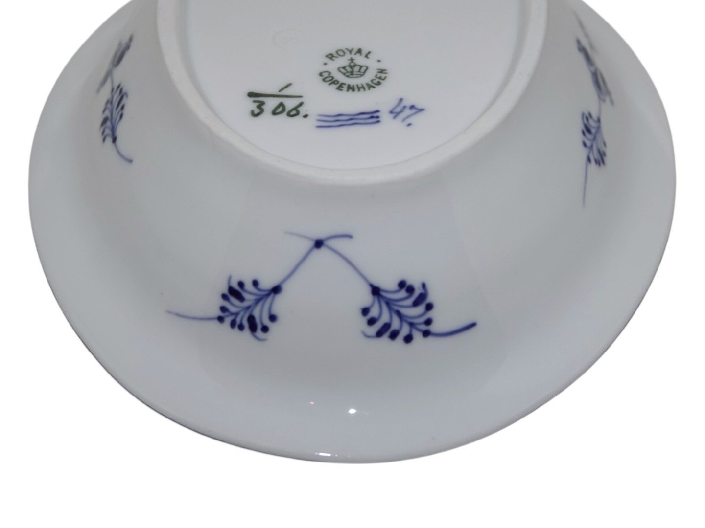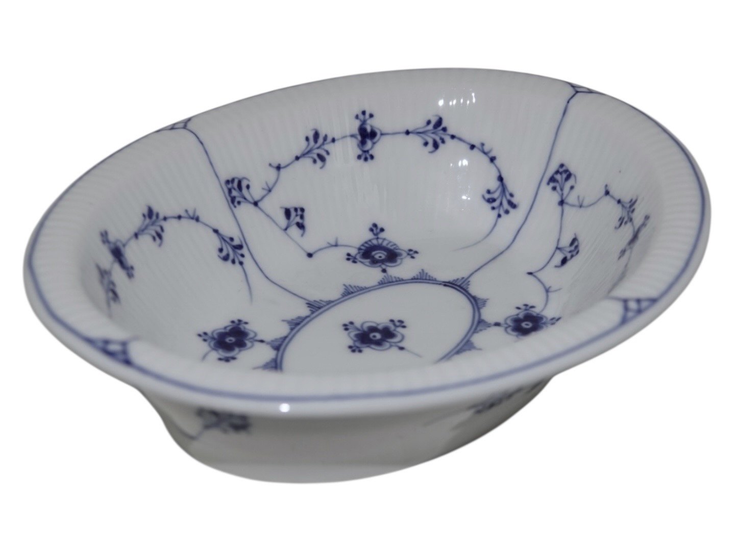 Royal Copenhagen Musselmalet Riflet, sjælden lille oval skål.