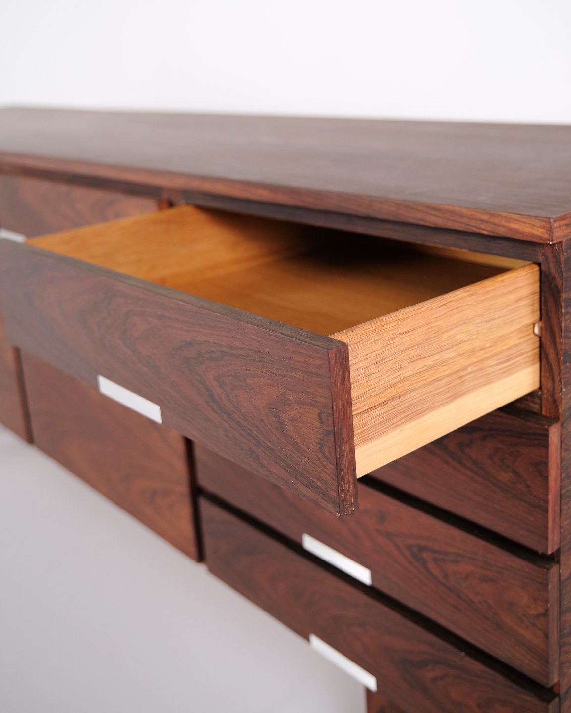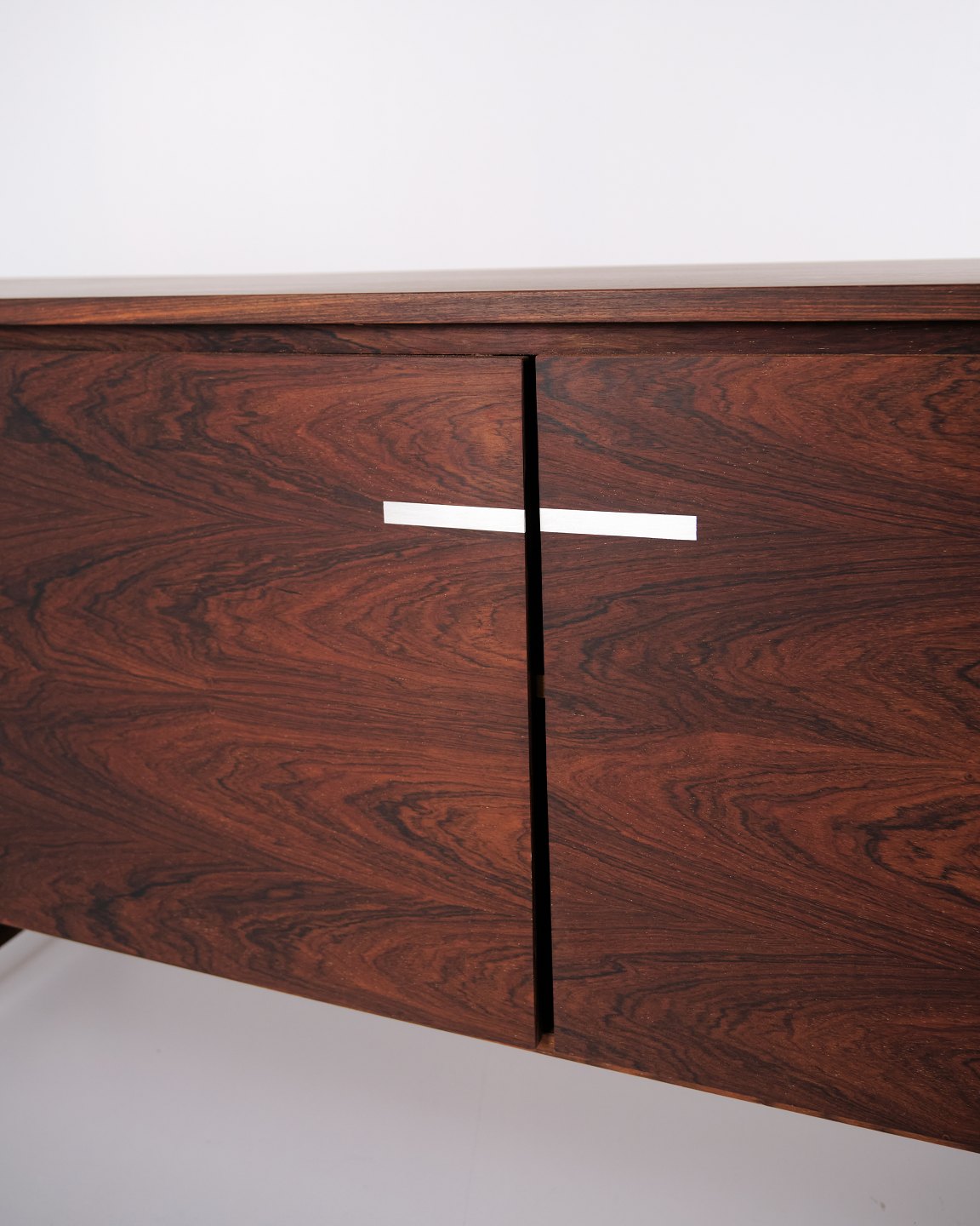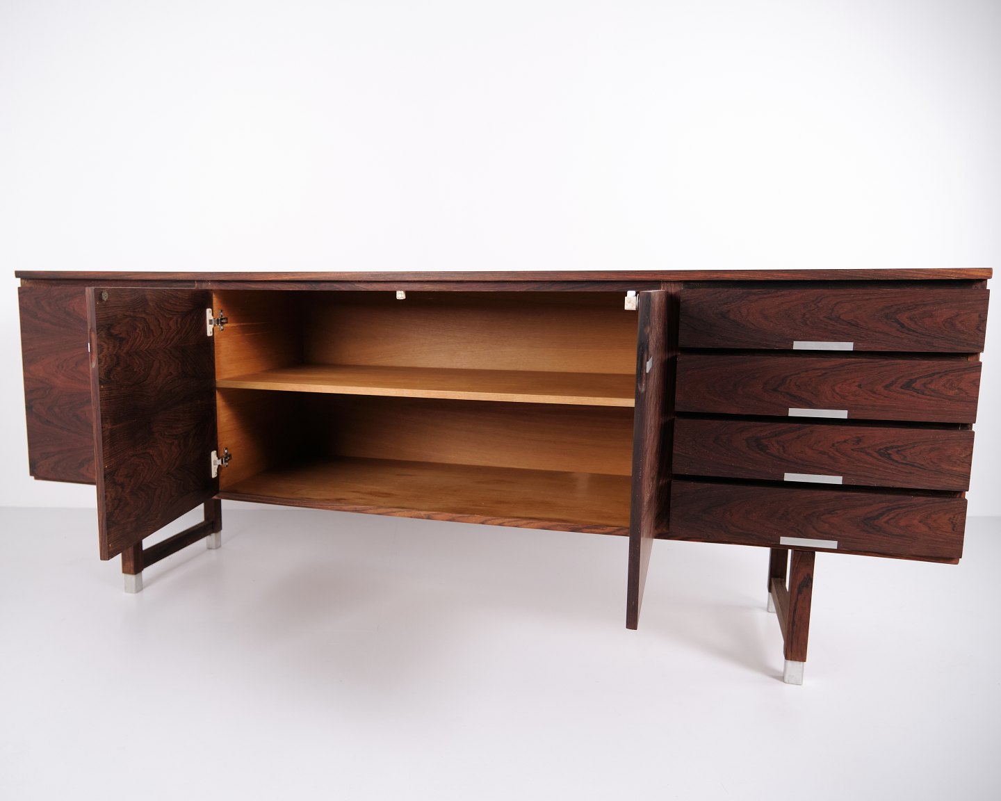 Skænk i palisander designet af Kai Kristiansen for Feldballes Møbelfabrik. Dansk design fra 1960’erne med alu greb og fødder.