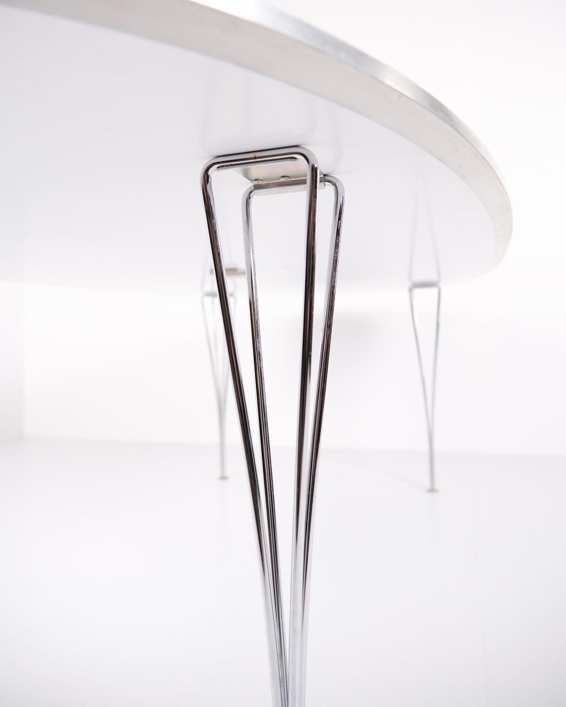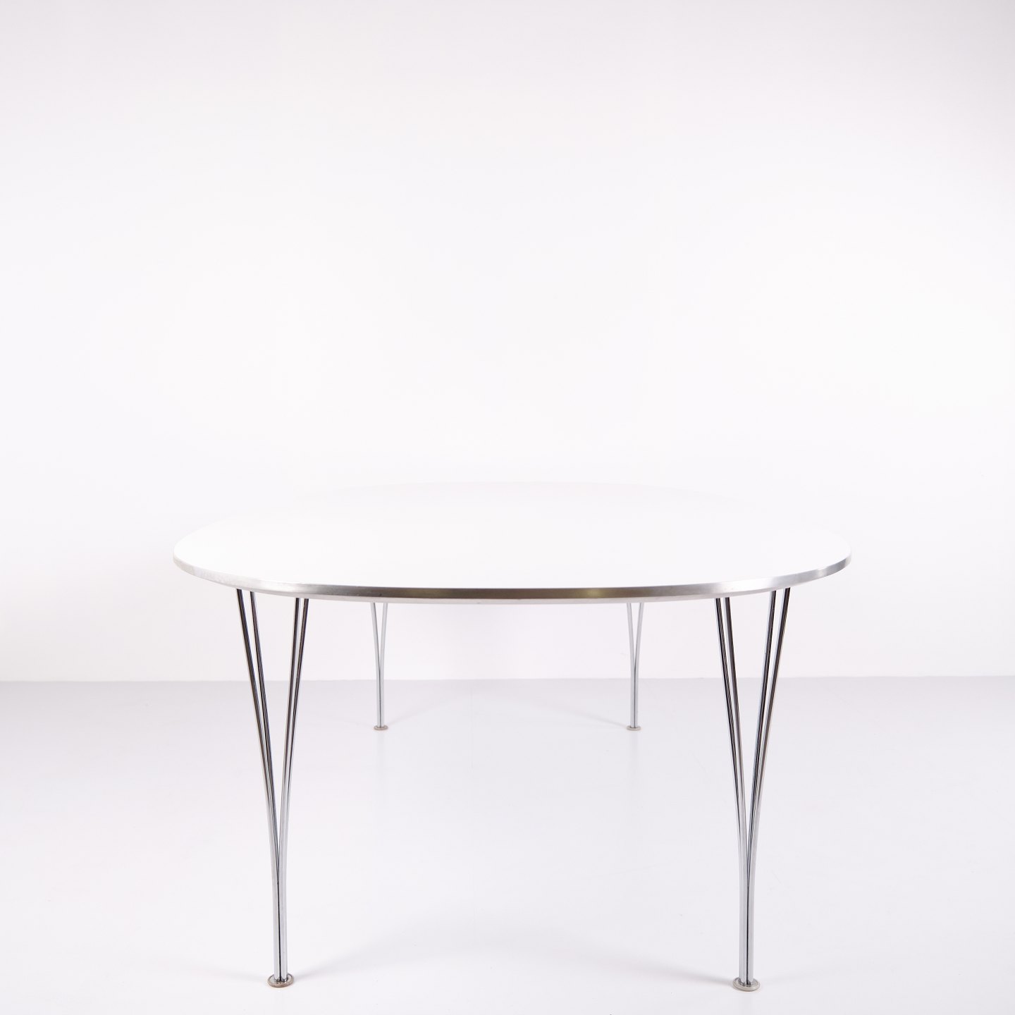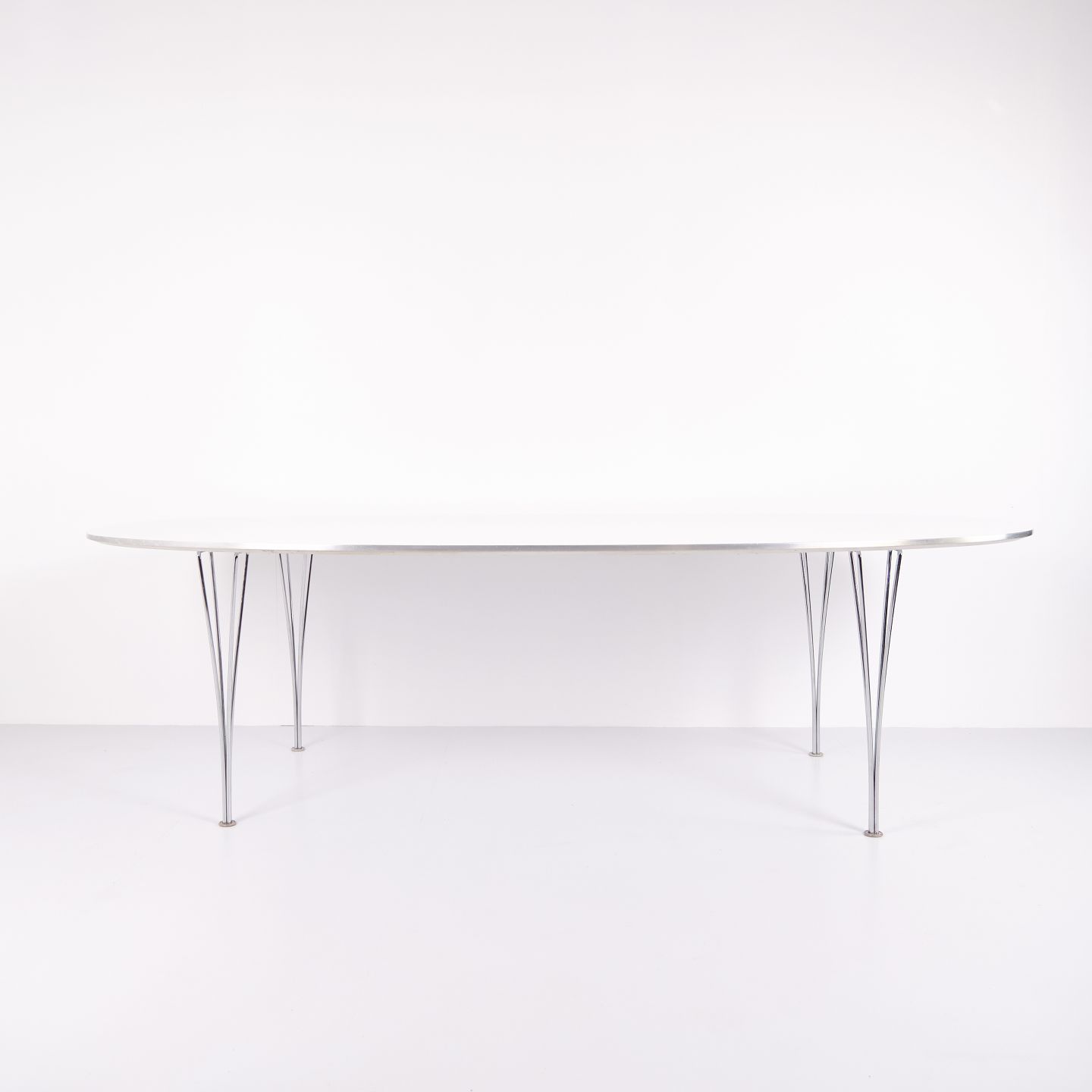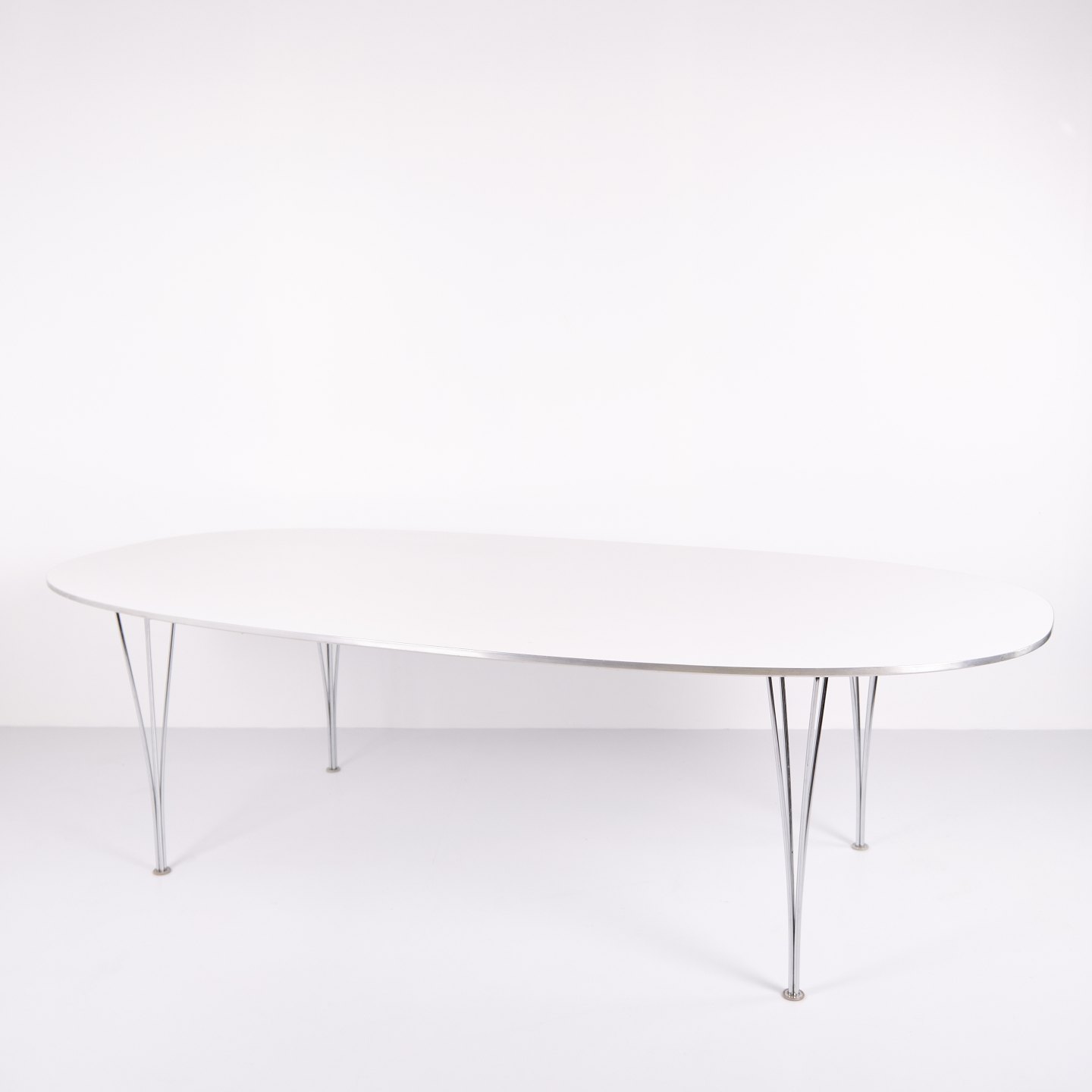 Super Ellipse spisebord model B614 designet af Piet Hein, Bruno Mathsson og Arne Jacobsen for Fritz Hansen. Hvid laminat. Ikonisk dansk designklassiker.
