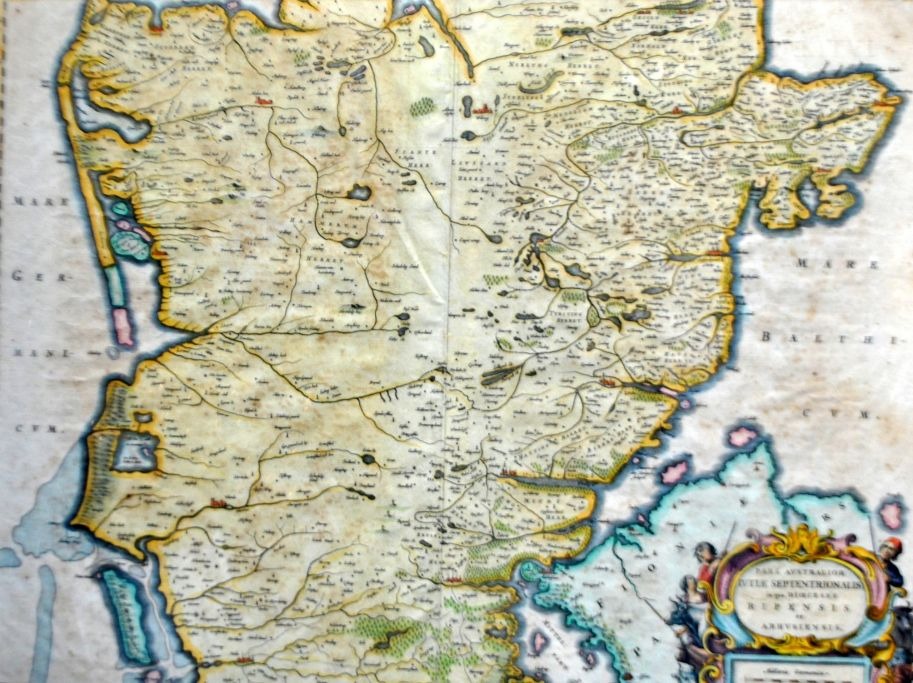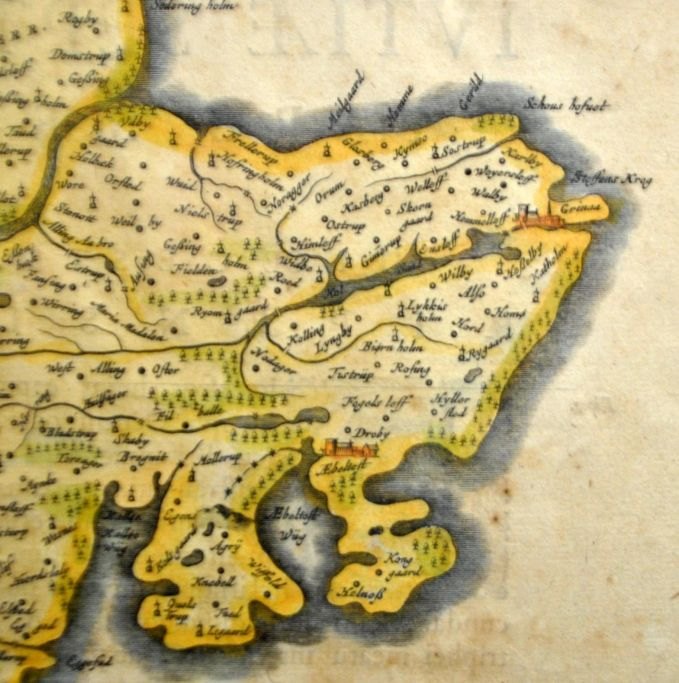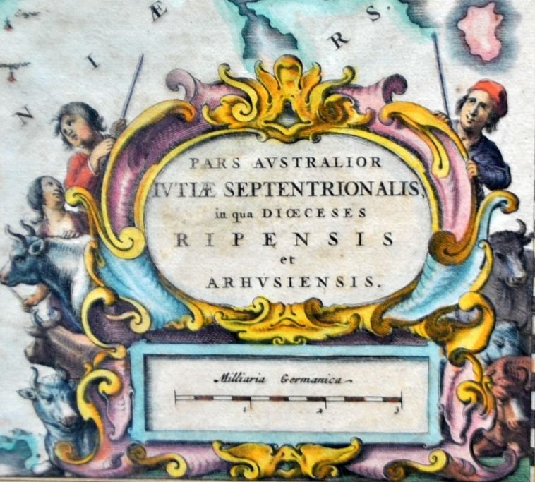 Frederik de Witt (17. årh.) Holland: Specialkort over Ribe og Aarhus bispedømmer. ca. 1660. Håndkoloreret kobberstik. Usigneret. 44 x 58 cm. Latinsk udgave.