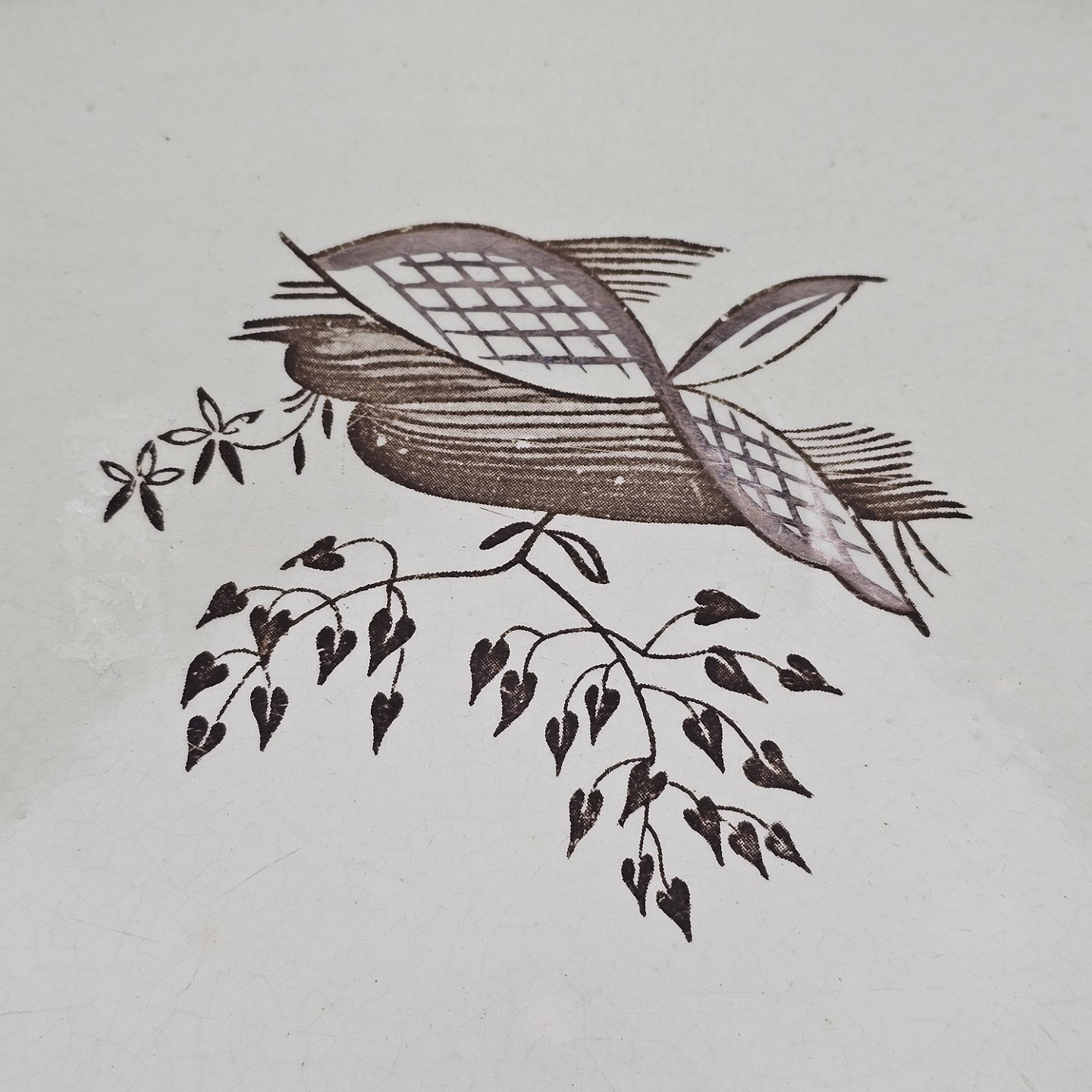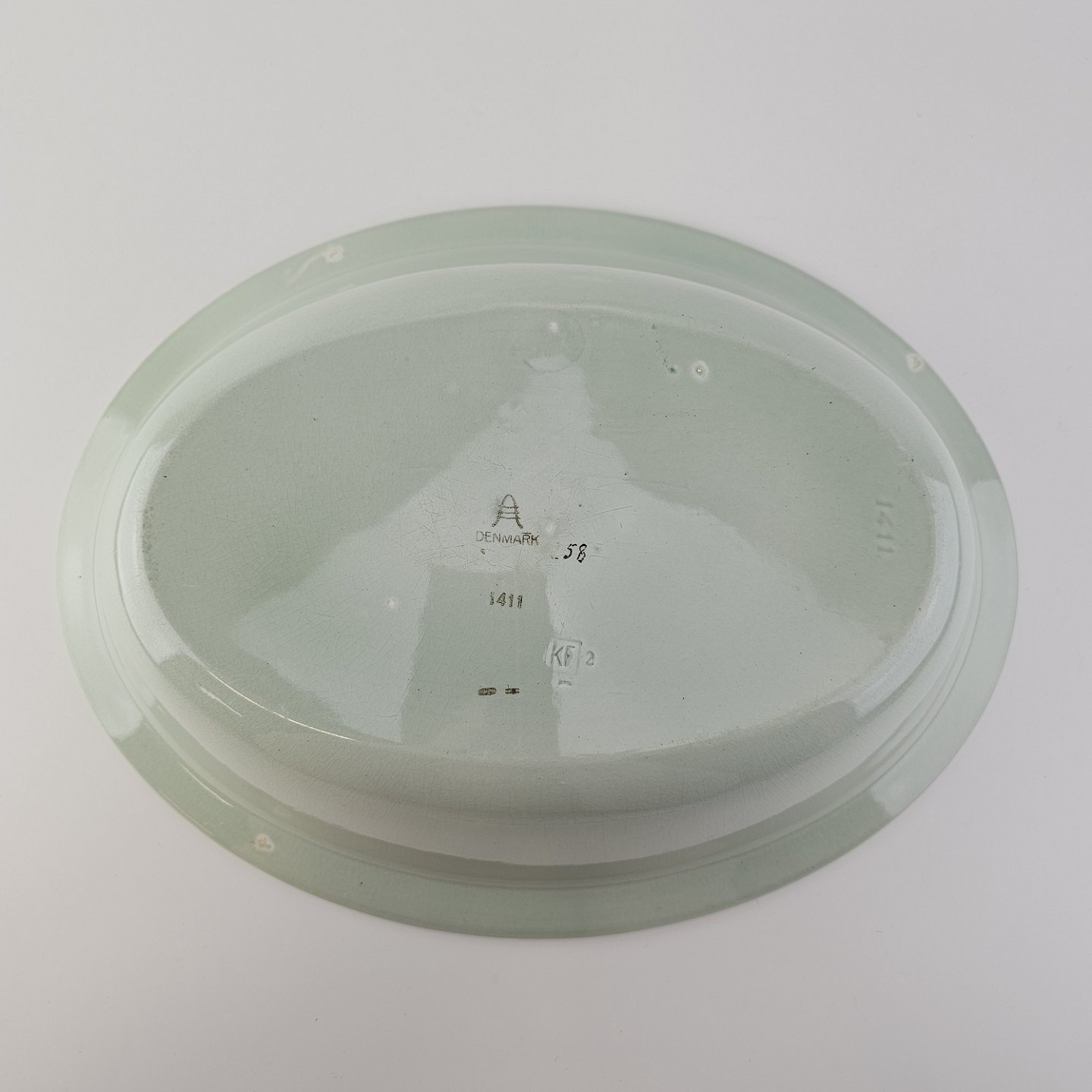 Stel i lysegrøn fajance med natur dekoration og flettet kant