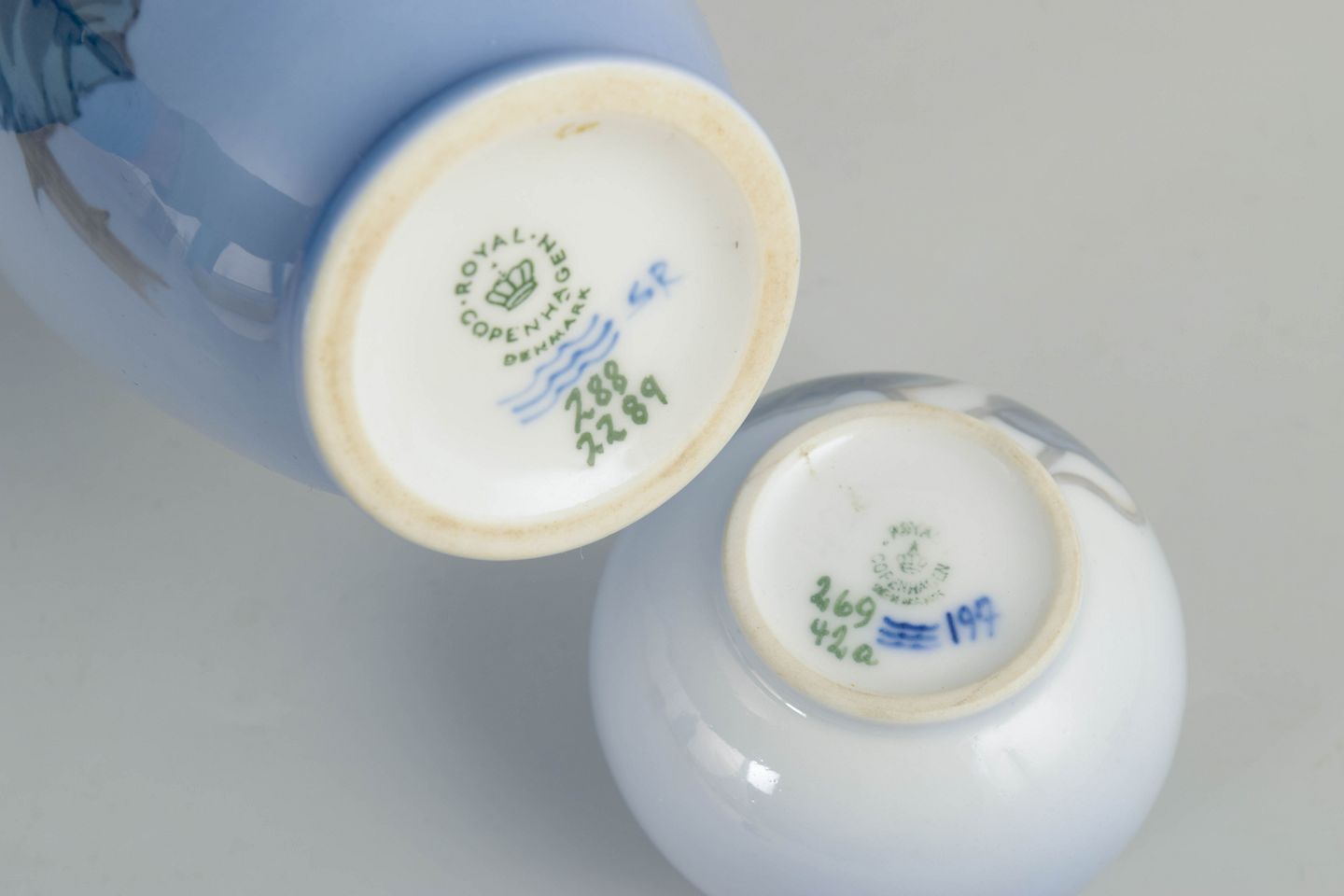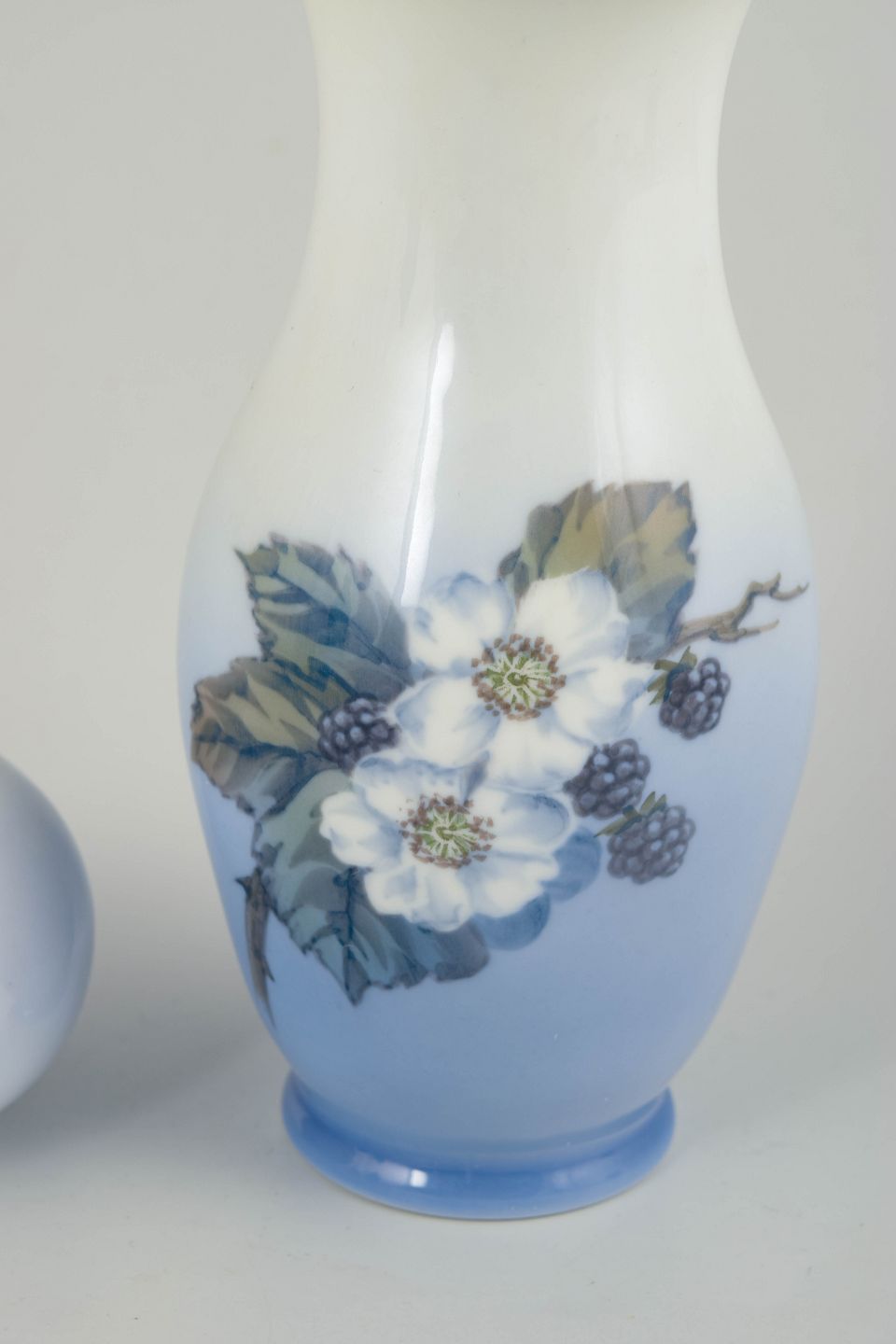 Royal Copenhagen arbejdede gennem både 1920’erne og 1960’erne med dekorative vaser, hvor klassiske former blev kombineret med håndmalede blomster- og plantemotiver i underglasur. 1920’ernes produktion er ofte præget af bløde overgange og et mere kunstnerisk, malerisk udtryk, mens 1960’erne viser et renere formsprog med tydeligere farveopdelinger. Begge perioder vidner om fabrikkens høje håndværksmæssige niveau og lange tradition for porcelænskunst.