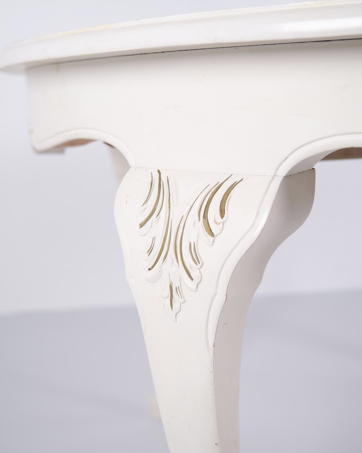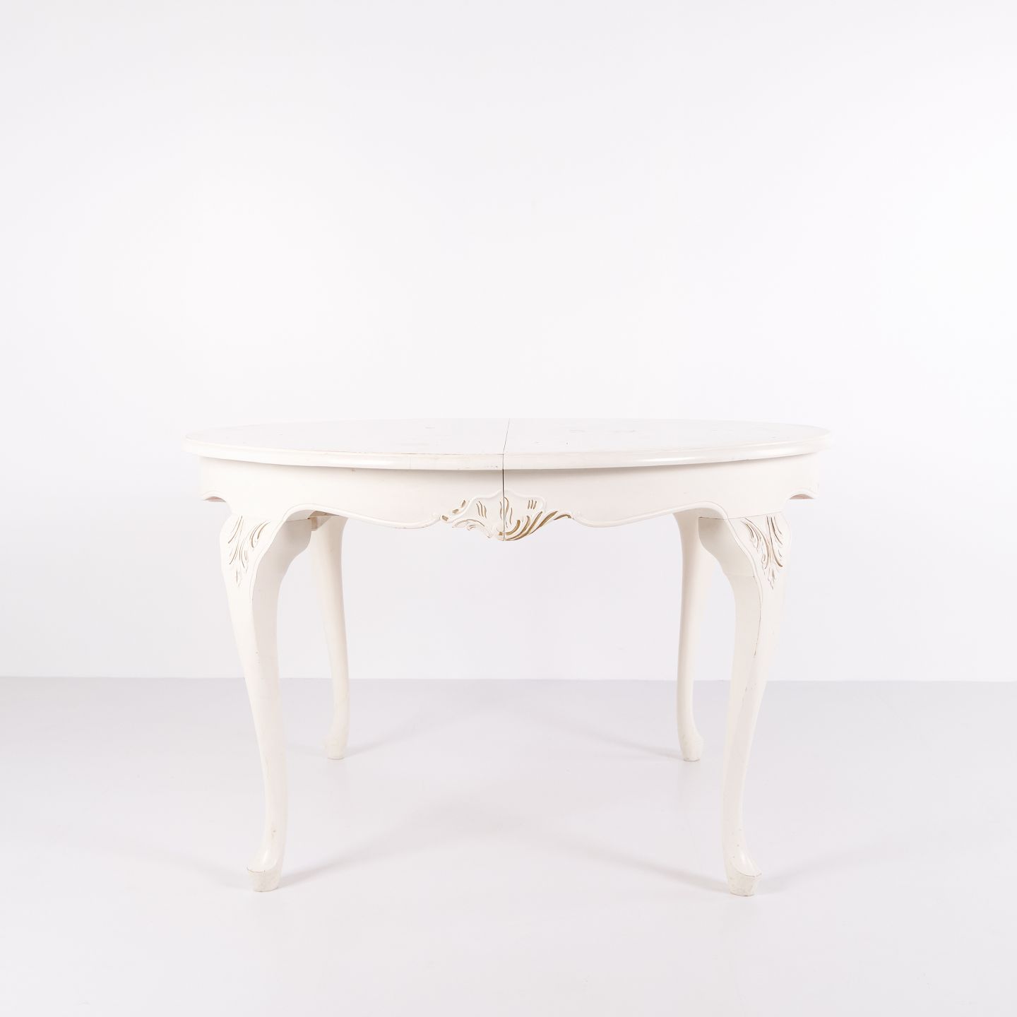 Antik Rundt Spisebord Med Udtræk - Ny Rokoko Stil - Hvidmalet Med Dekorative Detajler - År 1920erne