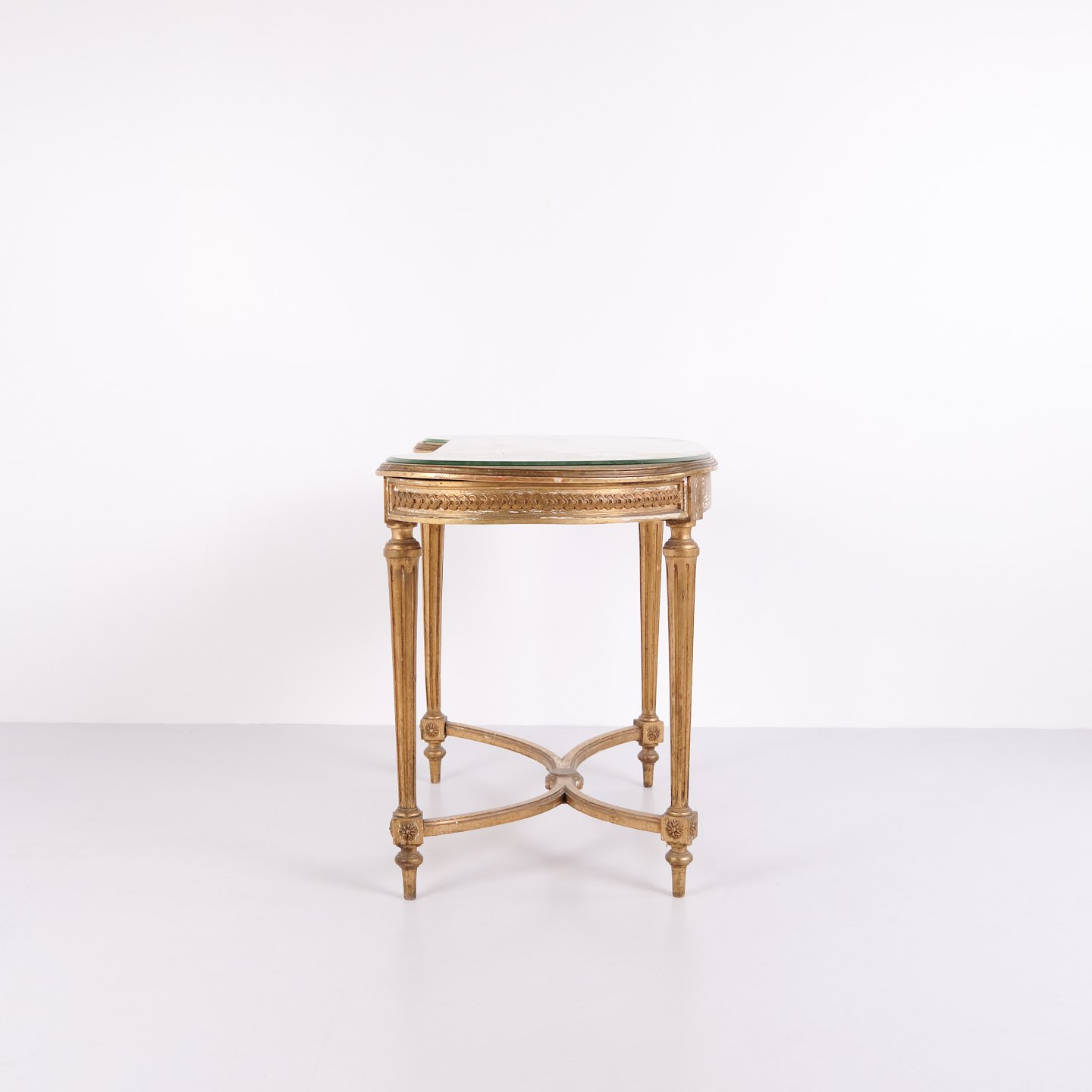 Antik skrivebord 1850’erne i gustaviansk/Louis XVI stil, forgyldt træ, glasbordplade og skuffe.