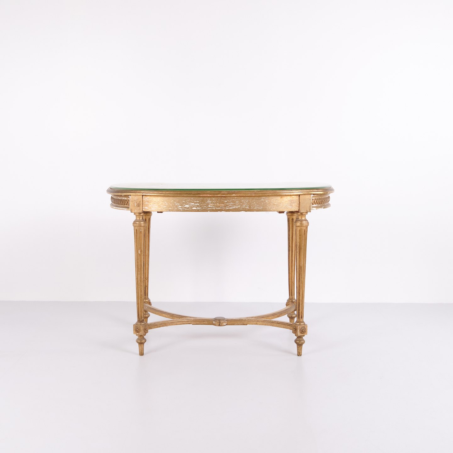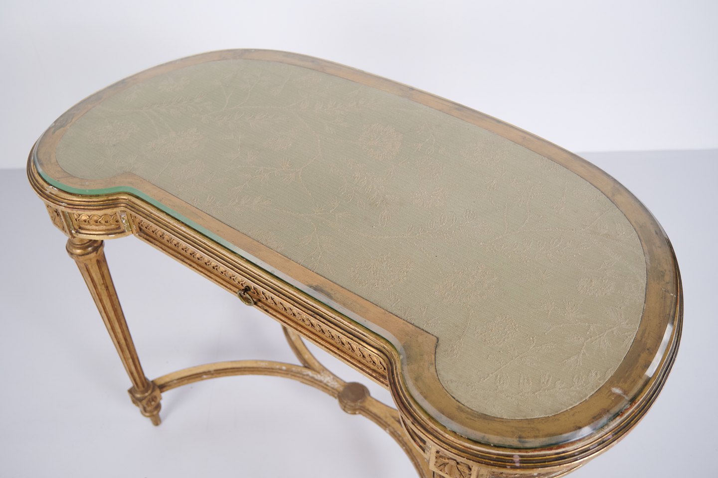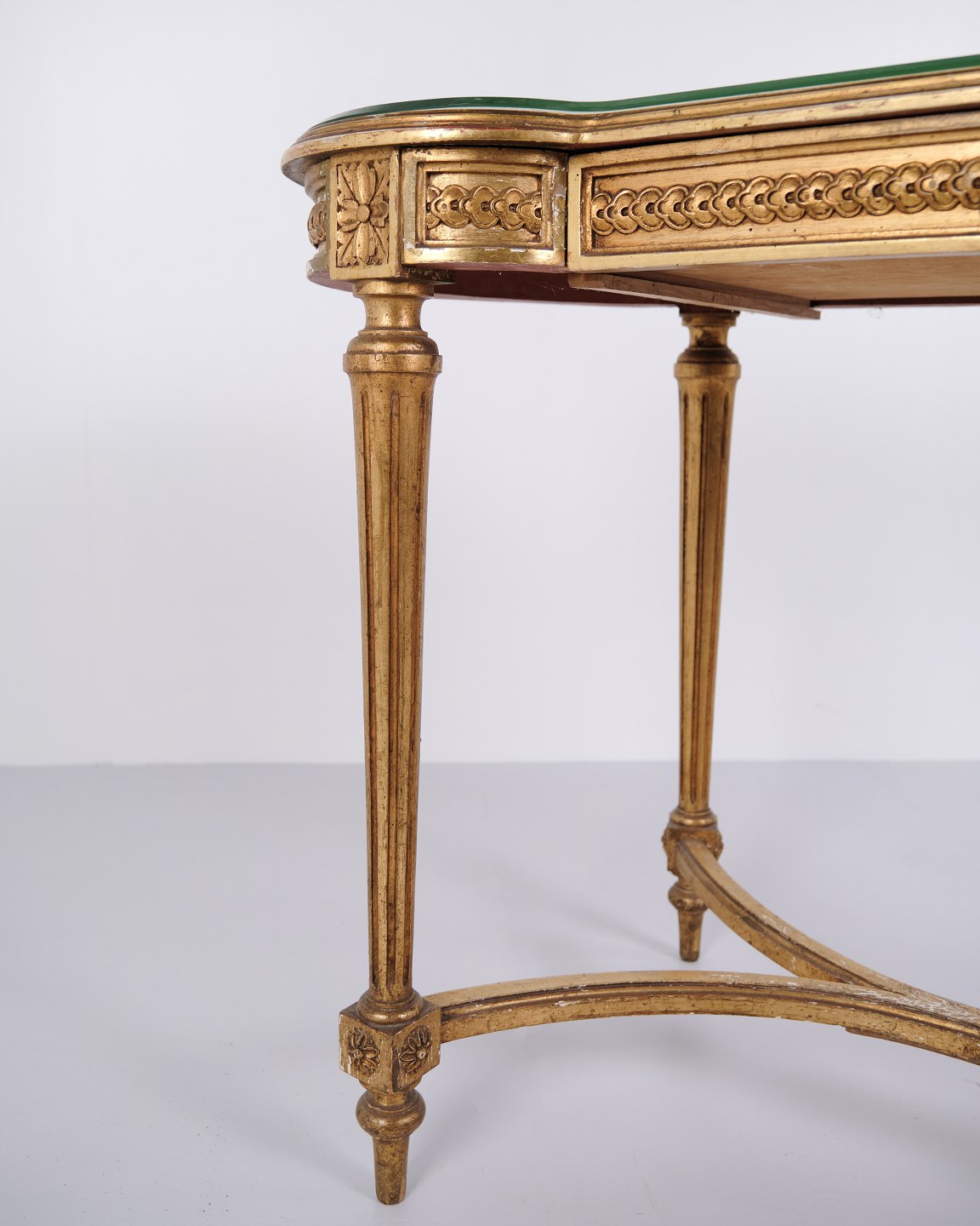 Antik Skrivebord Med Glasbordplade & Skuffe – Gustaviansk/Louis XVI-stil – Forgyldt Træ – År 1850erne