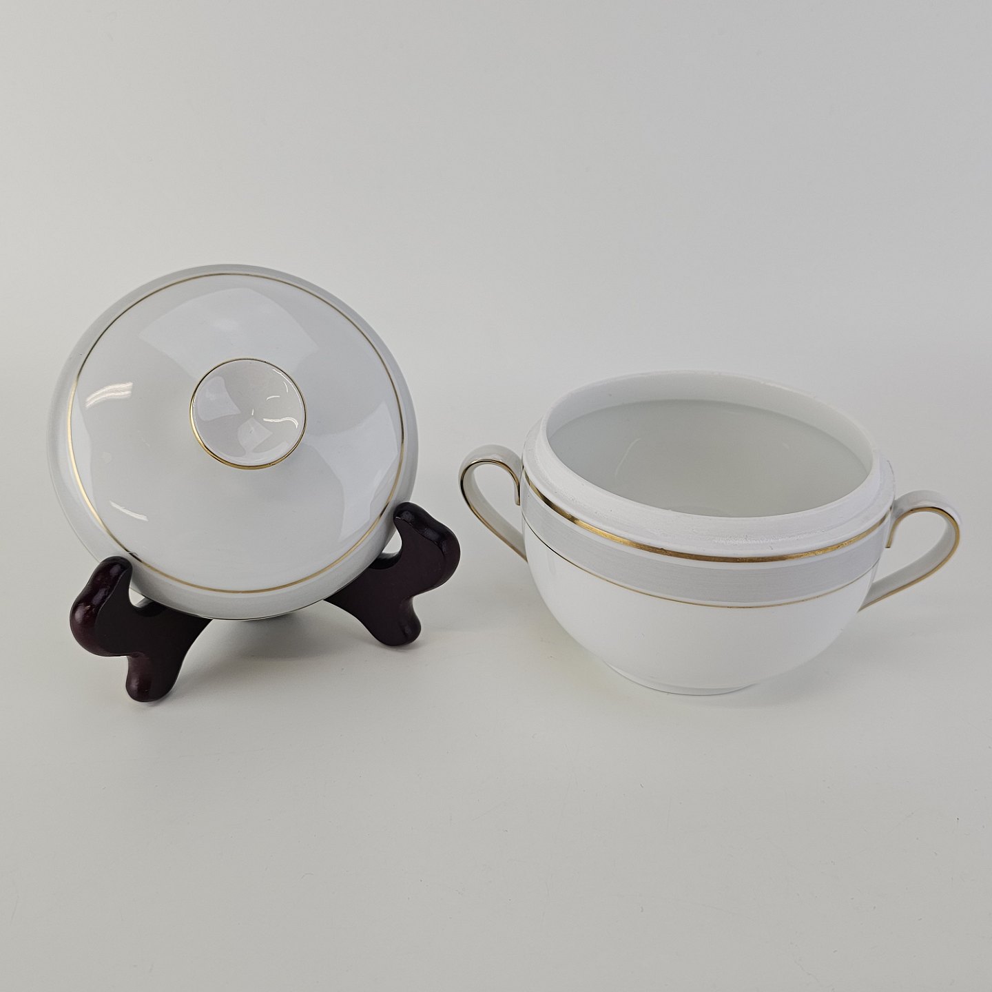Sukkerskål med låg og hanke i porcelæn fra stellet Tiber