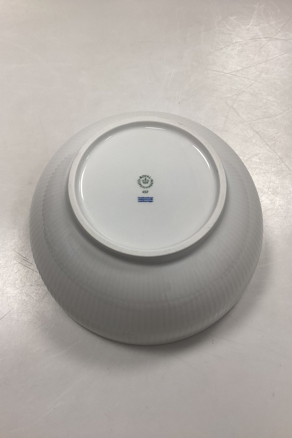 Royal Copenhagen Hvid Riflet Skål No 457. Måler 9,5 cm x 21 cm dia. / 3,74 in. x 8,26 in.