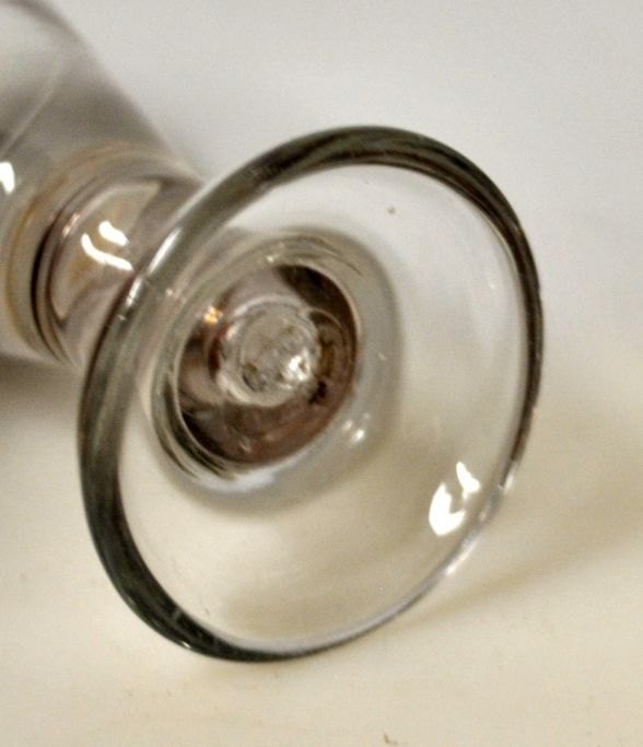 Frimurerglas. Conradsminde, 1834 - 1857, Danmark. Klart glas med bøjet fod og hul stilk. Dia.: 5,8 cm. H.: 12,3 cm.