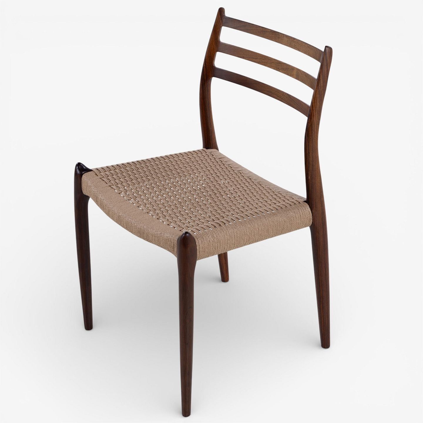 NO 78 - Sæt á 6 spisestole i palisander med sæde i papirgarn. Mærket fra producent.