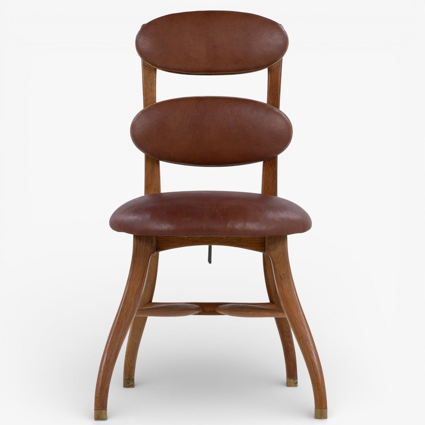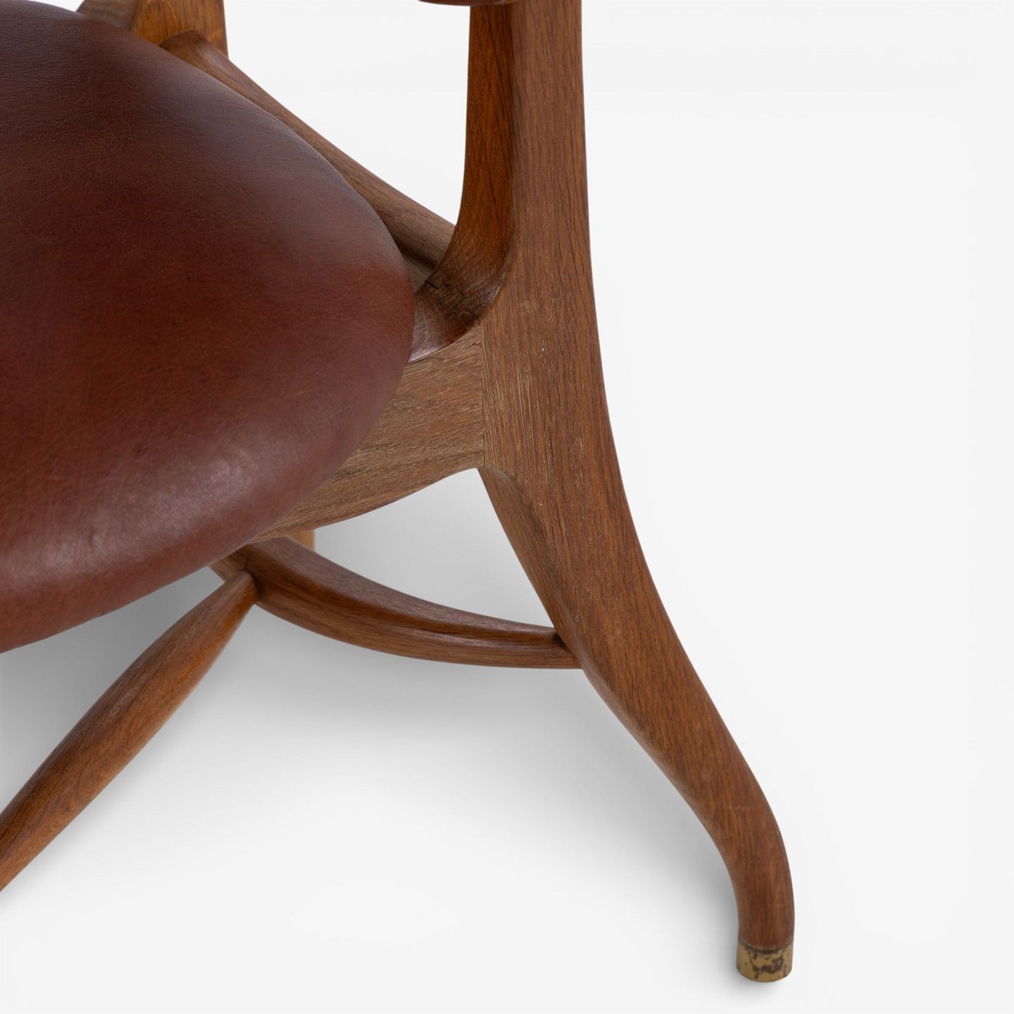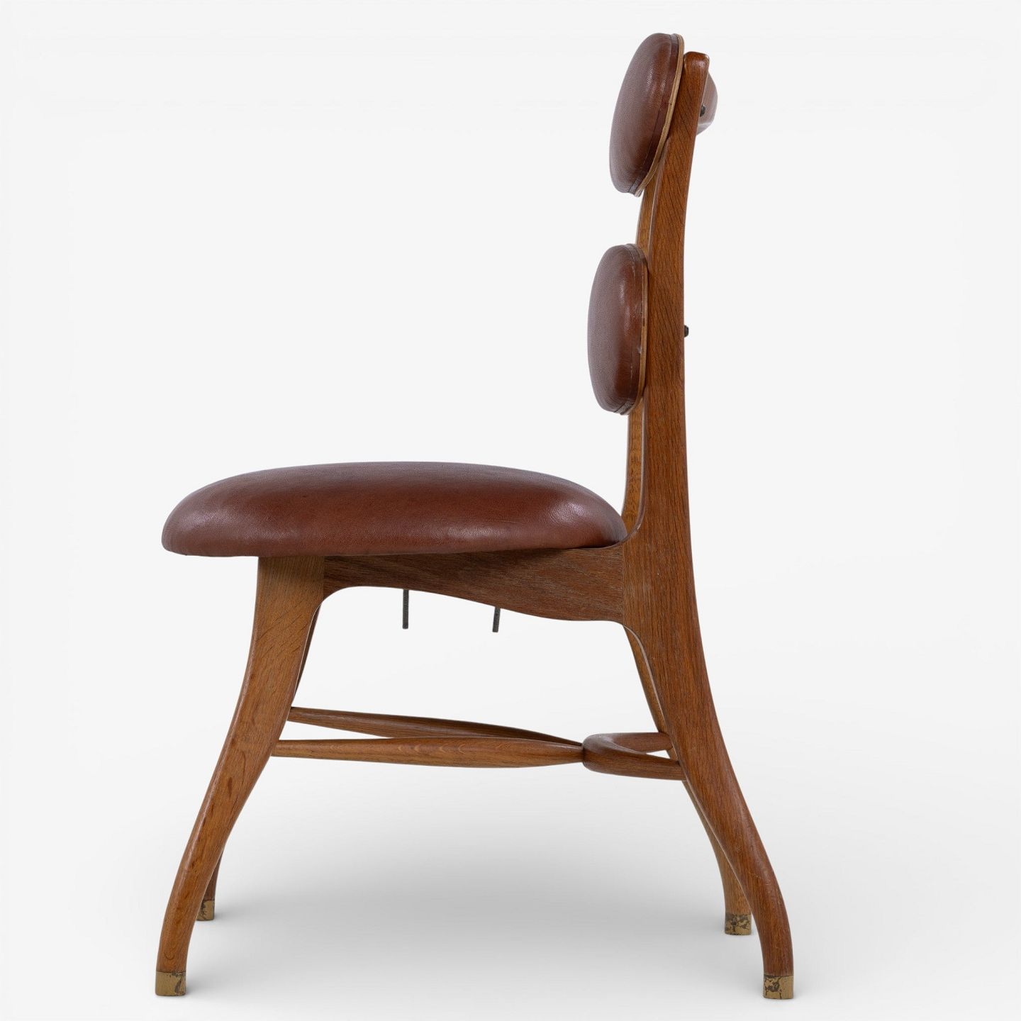 'Musikerstol' med stel i patineret egetræ og justerbart sæde og ryg i patineret nigerskind. Formgivet i 1942.
