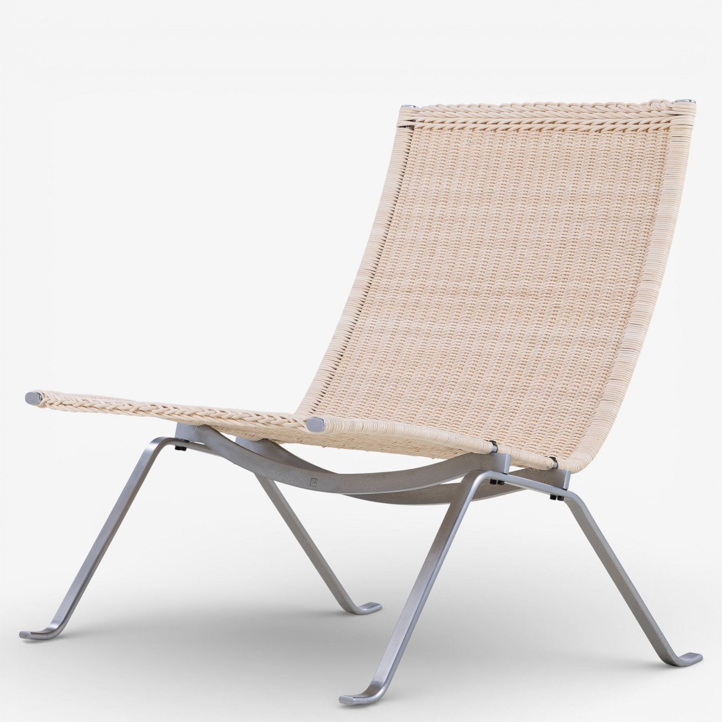 PK 22 - Lænestol i nyflettede peddigrør med stel i stål. Stemplet fra producent.