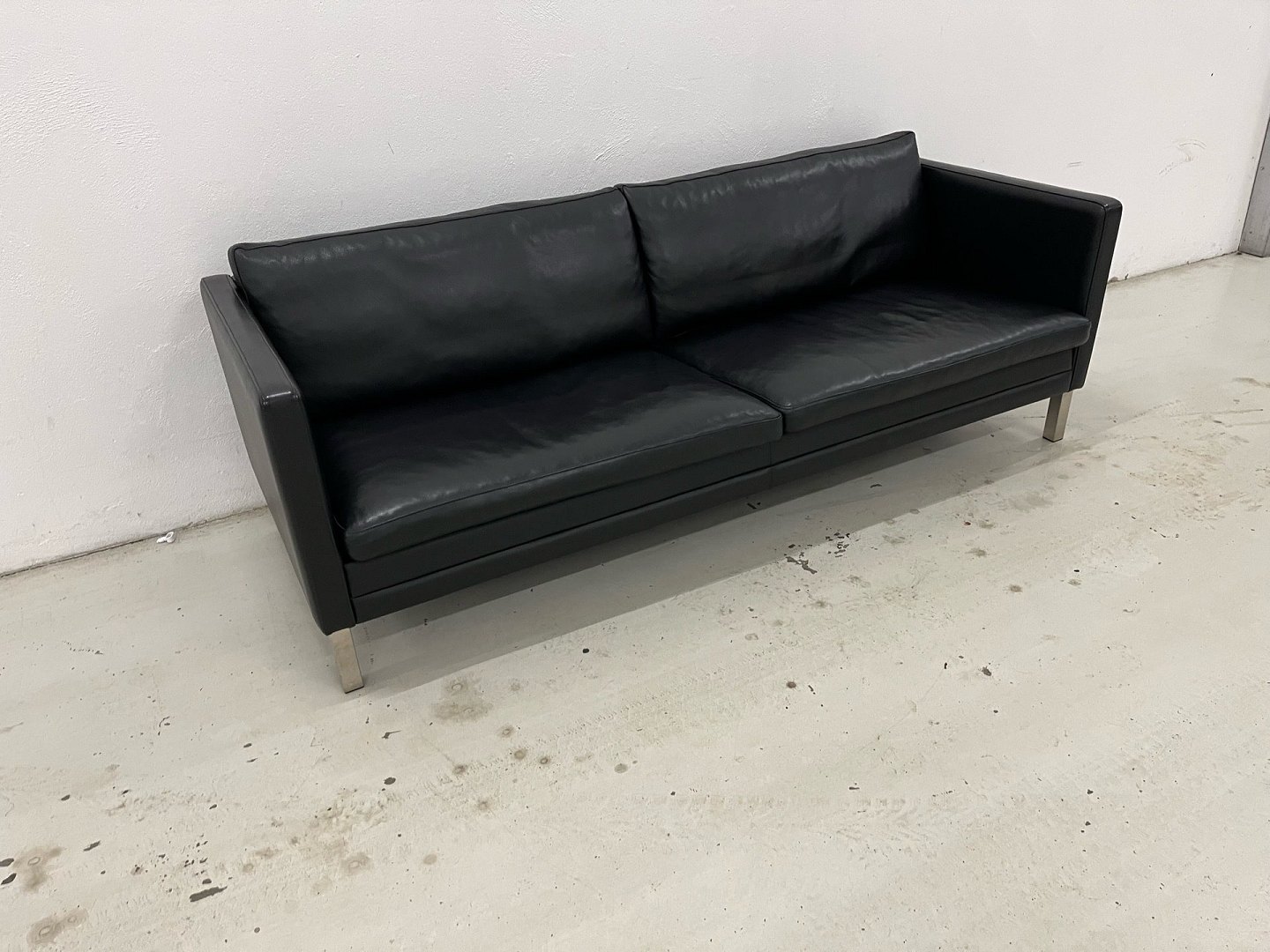 Eksklusiv 3-personers sofa, model MH276, designet af Mogens Hansen. Sofaen er udført i Loke læder, gruppe 2, i farven Black med elegante ben i børstet stål.
