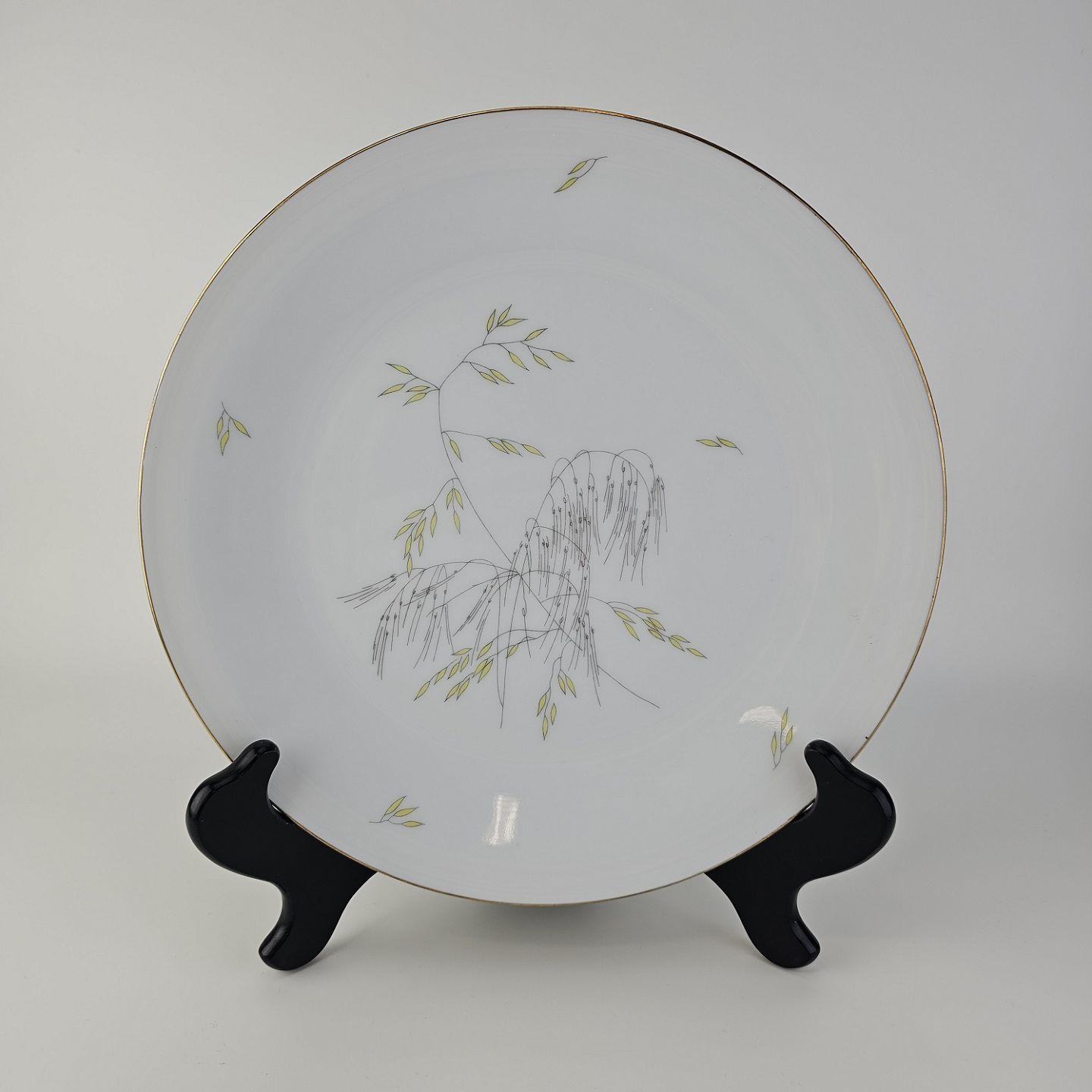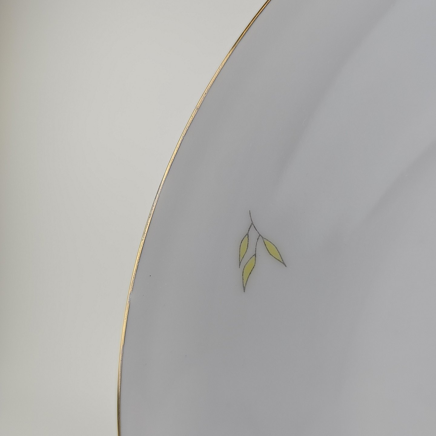 Service i hvidt porcelæn med motiv af blomster og guldkant