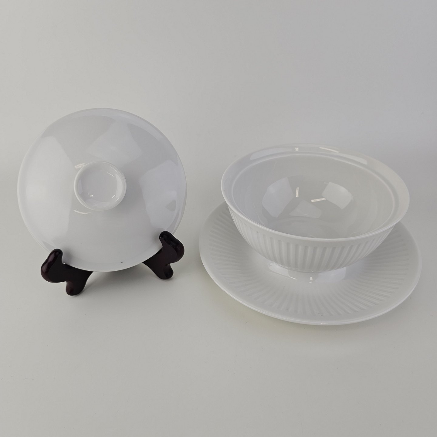 Georgiana er stel i hvidt porcelæn med riflet mønster