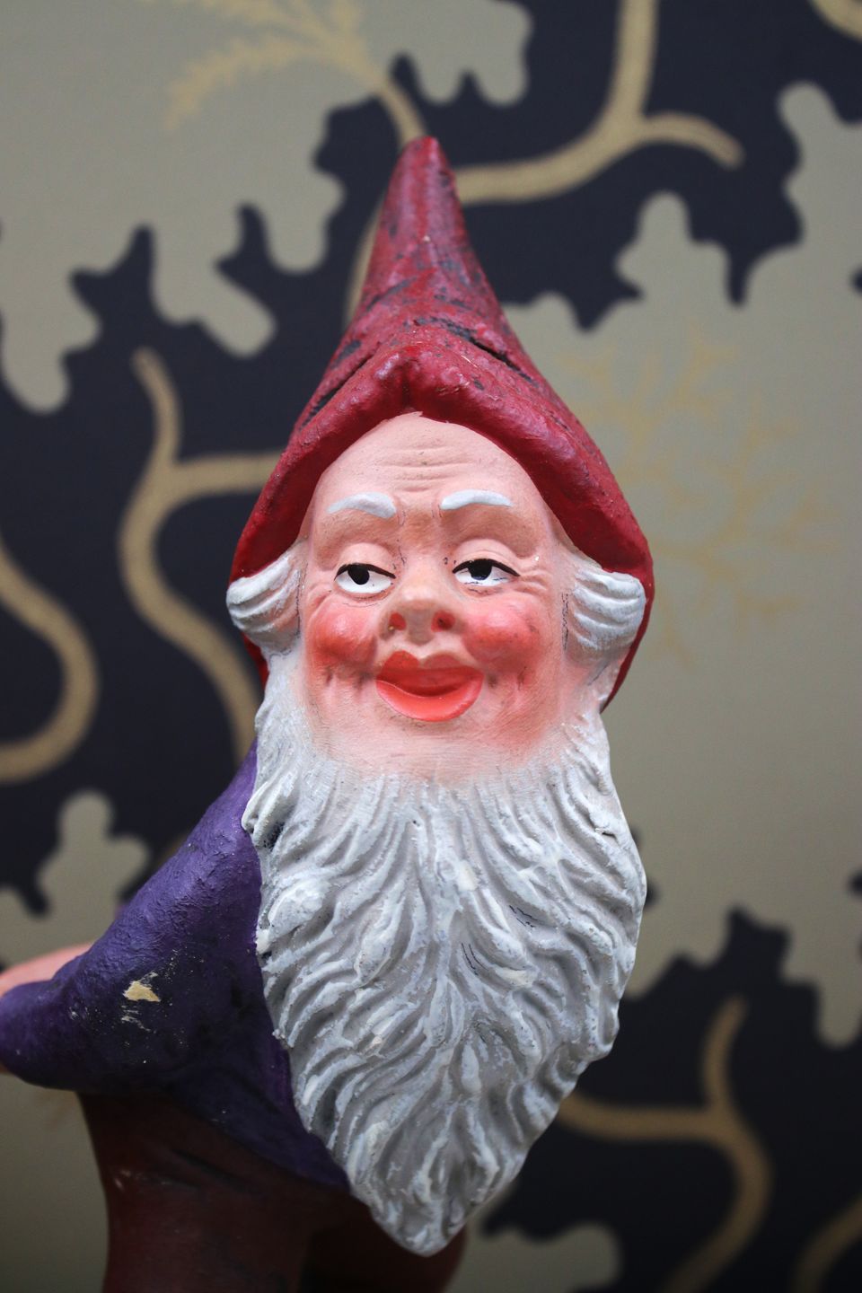 Gammel julenisse i bemalet terrakotta med fin patina.