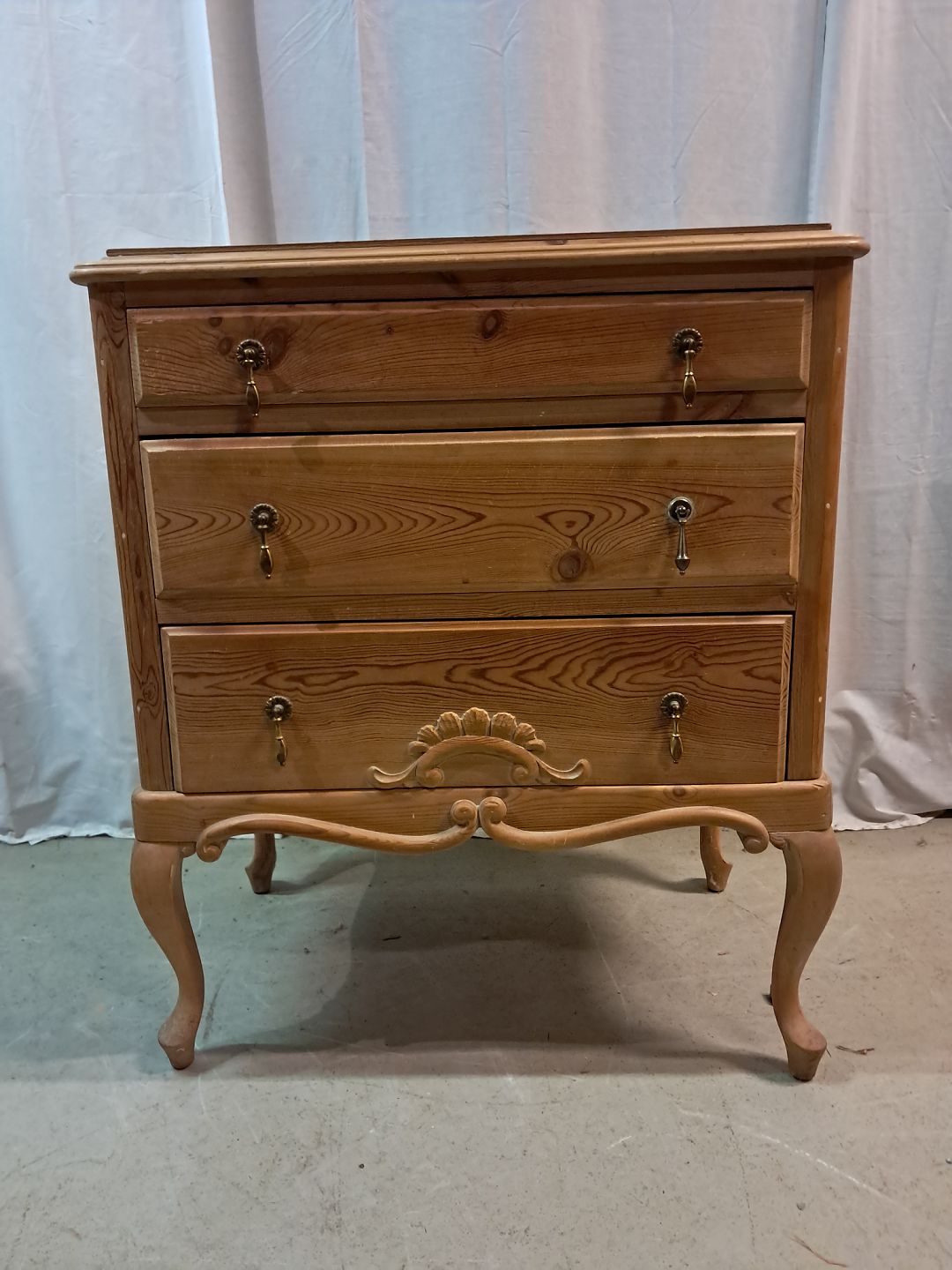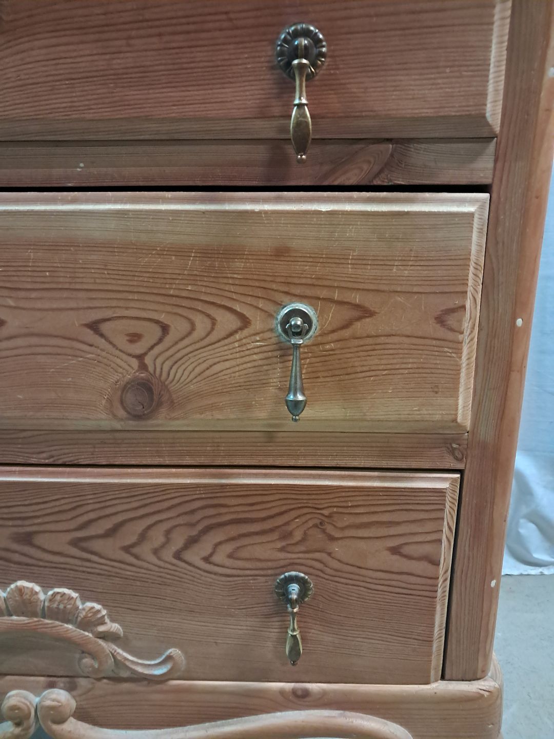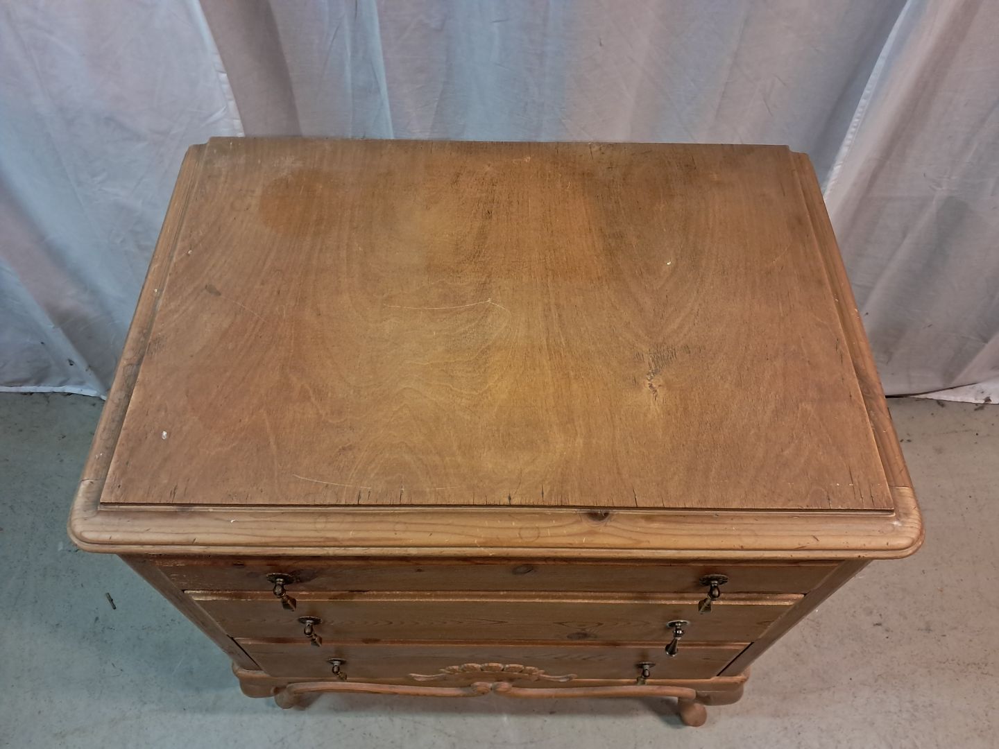 Kommode i massivt fyrretræ med topplade i krydsfiner, fra 1920erne.
