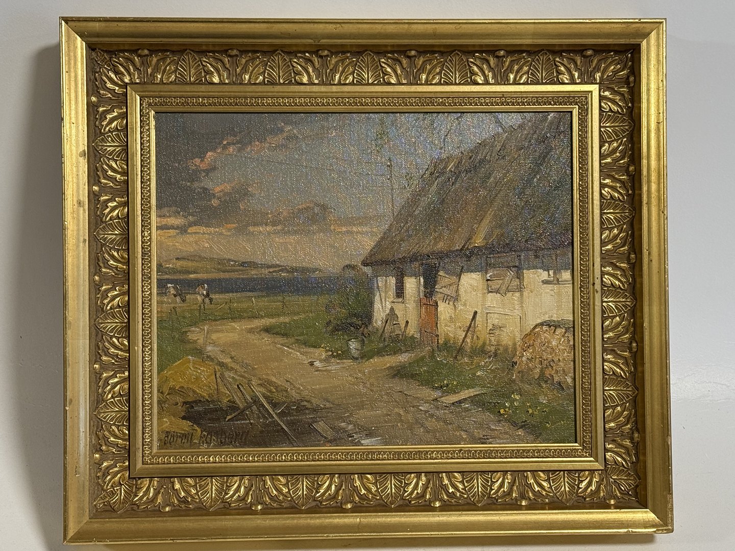Søren Edsberg ( f 1945 ), Oliemaleri på lærred af motiv fra landet, Mål med ramme: 40x34cm * Pæn stand*