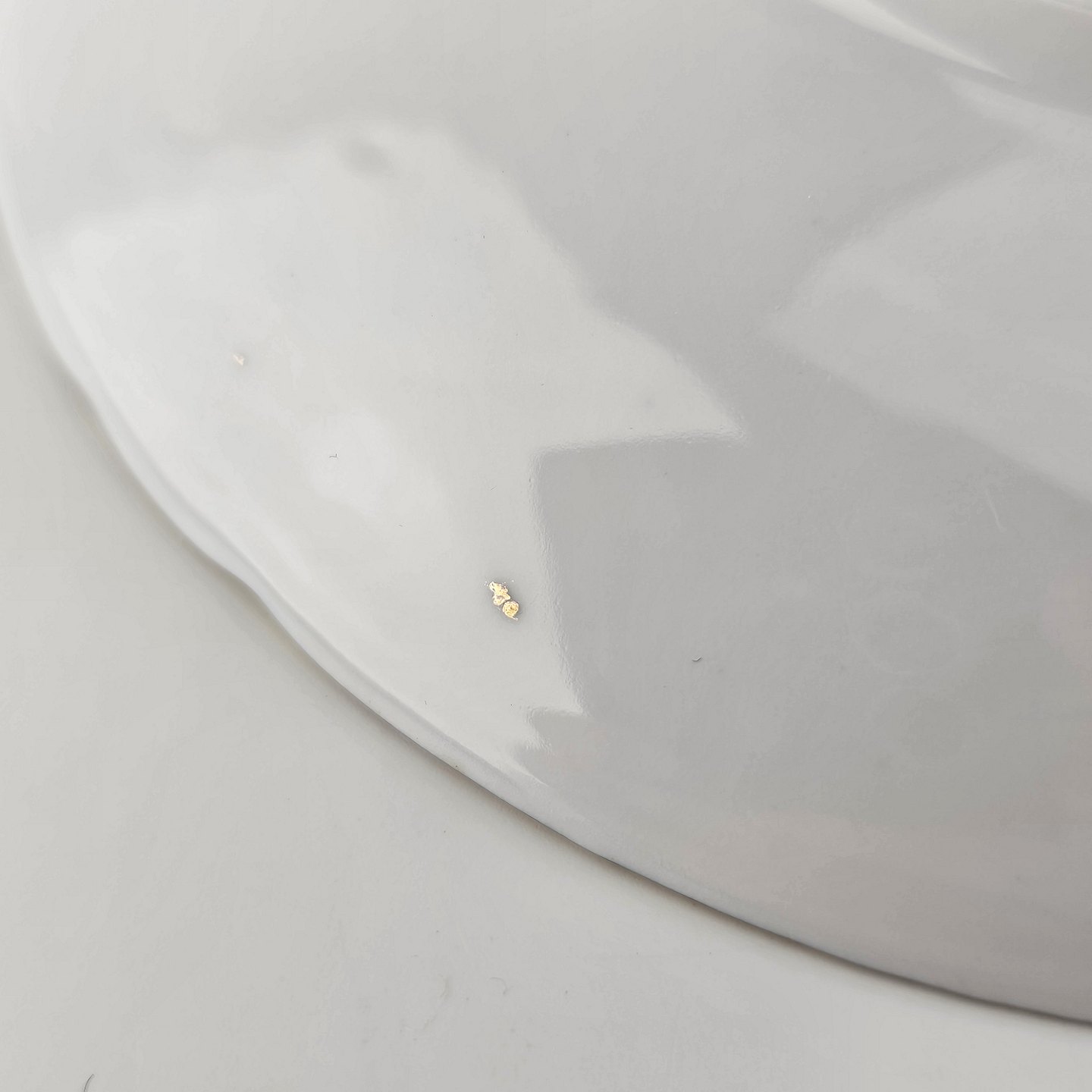 Antonius er af hvidt porcelæn med skælform dekoreret med håndmalede blå anemoner og guldkant