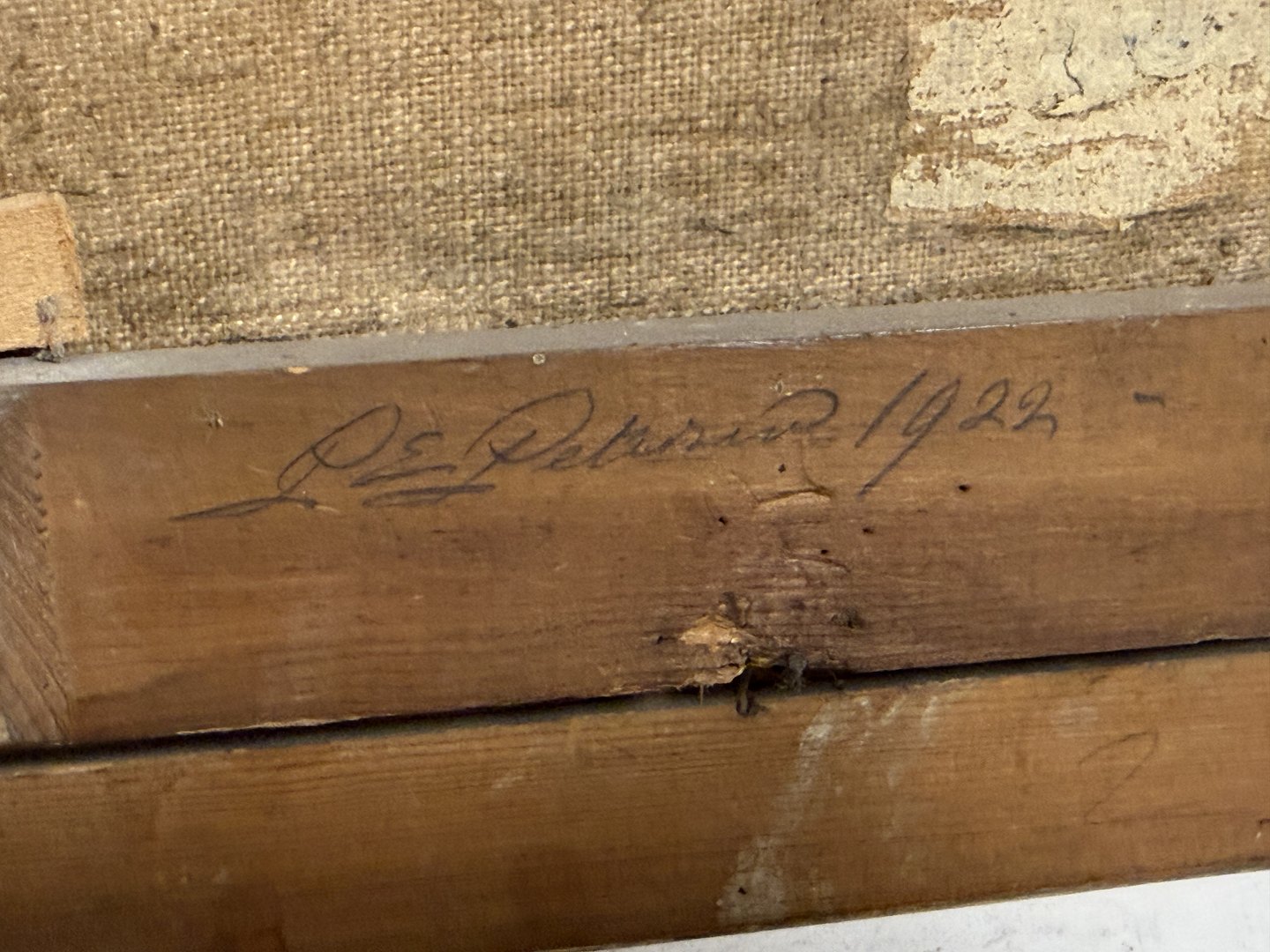 Peter Elias Petersen (1859 - 1950), Olimaleri på lærred, Baggårdsmotiv formodentlig fra København, signeret P.E.P. og bag på påskrevet P.E.Petersen 1922, Mål: 39x45cm *Et par små afslag på rammen ellers fin stand*