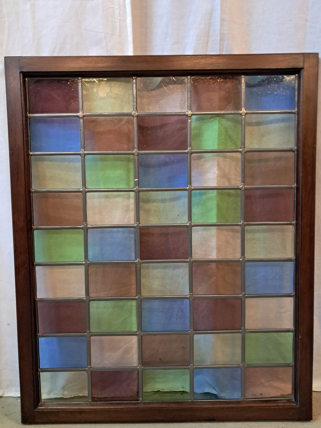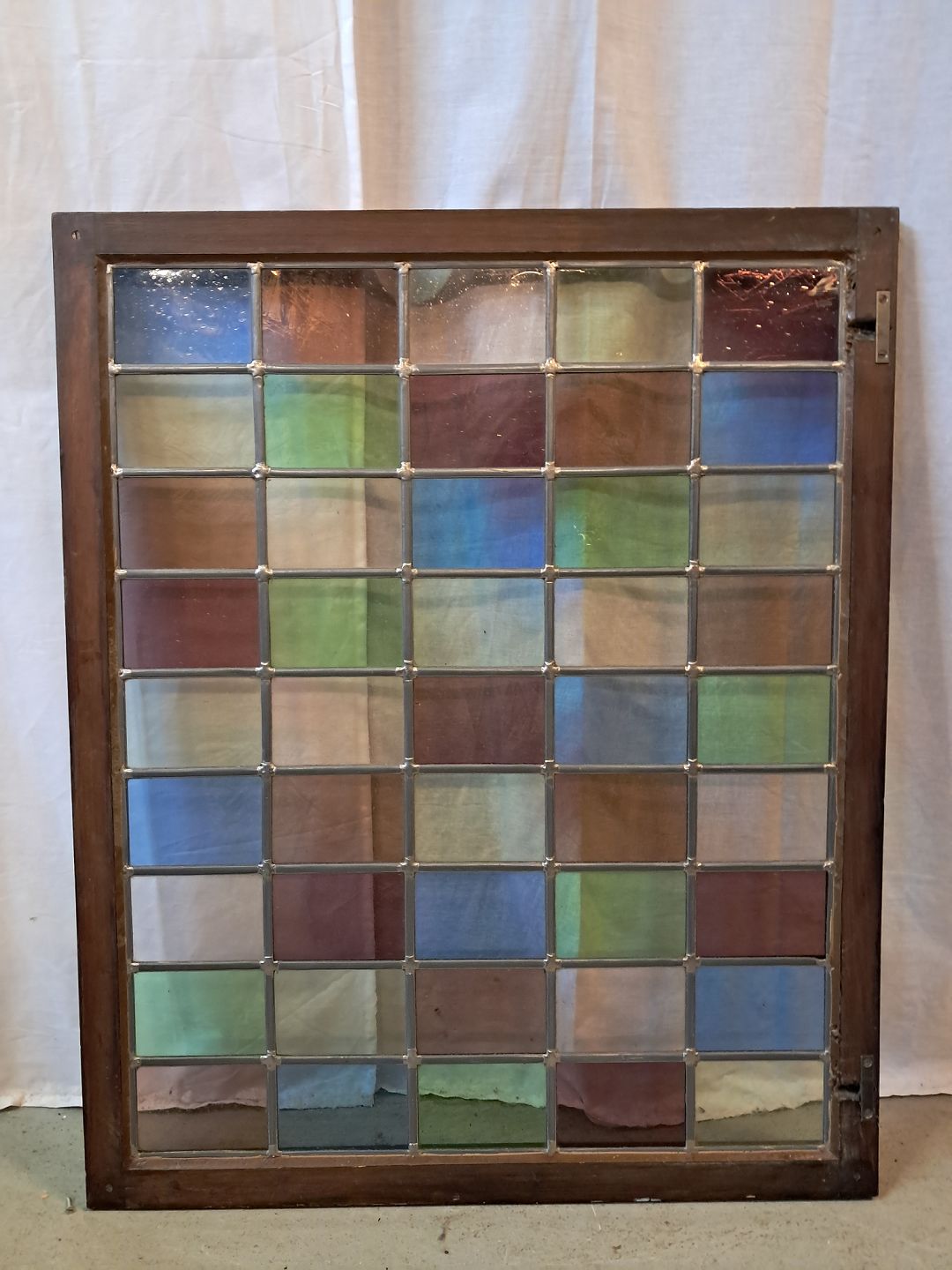 Blyindfattet rude med ramme i massivt fyrretræ, fra 1970erne.