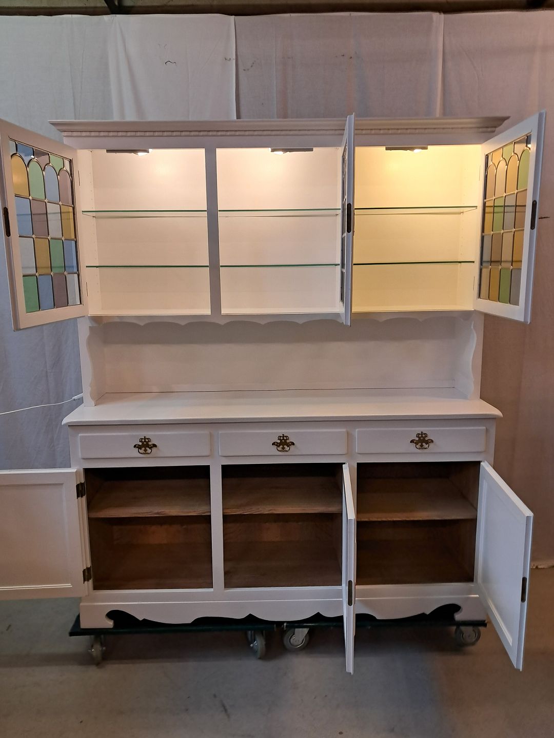 Malet skab med vitrineoverdel, fra 1980erne.