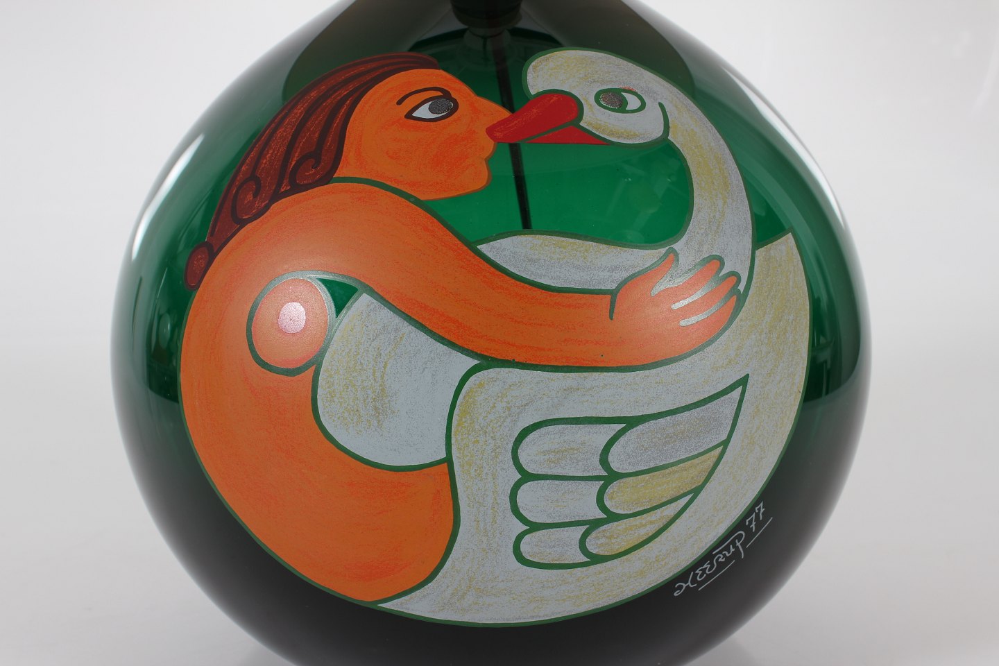 Stor kugleformet lampefod med Leda og Svanen