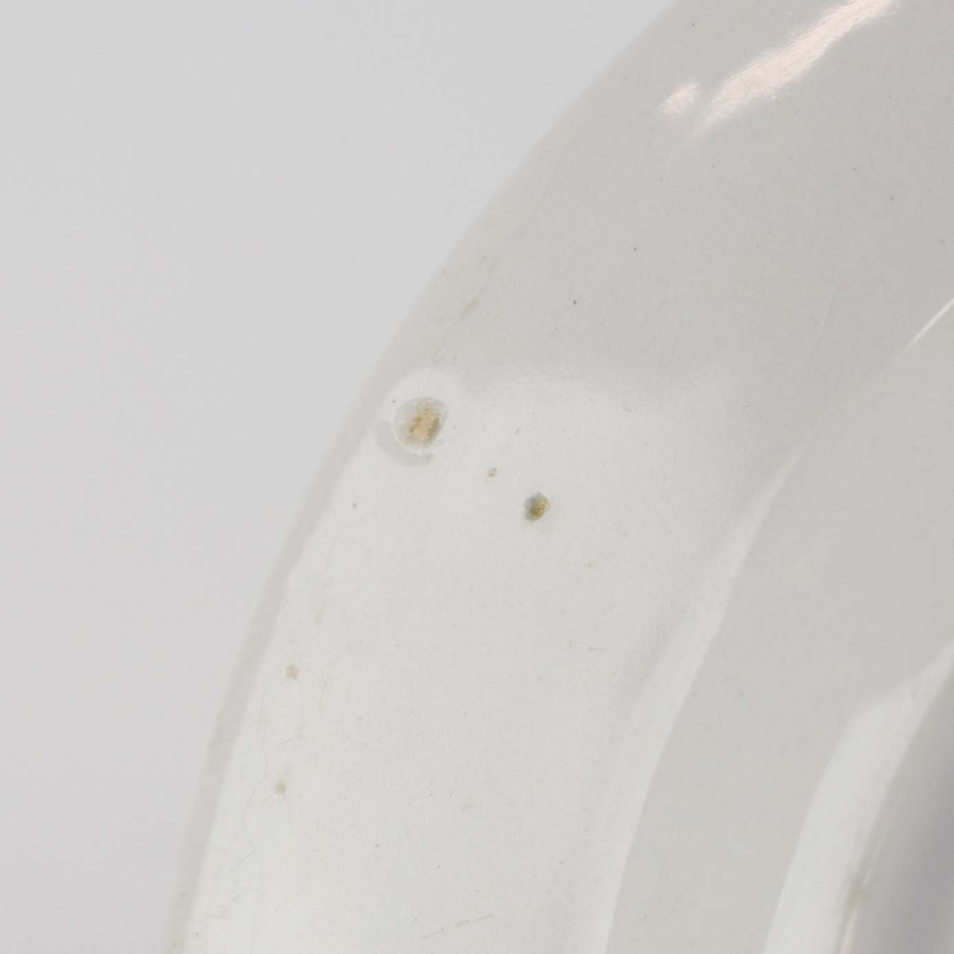 Fremstår med sorte nister i glasuren samt ujævnhed i glasuren.