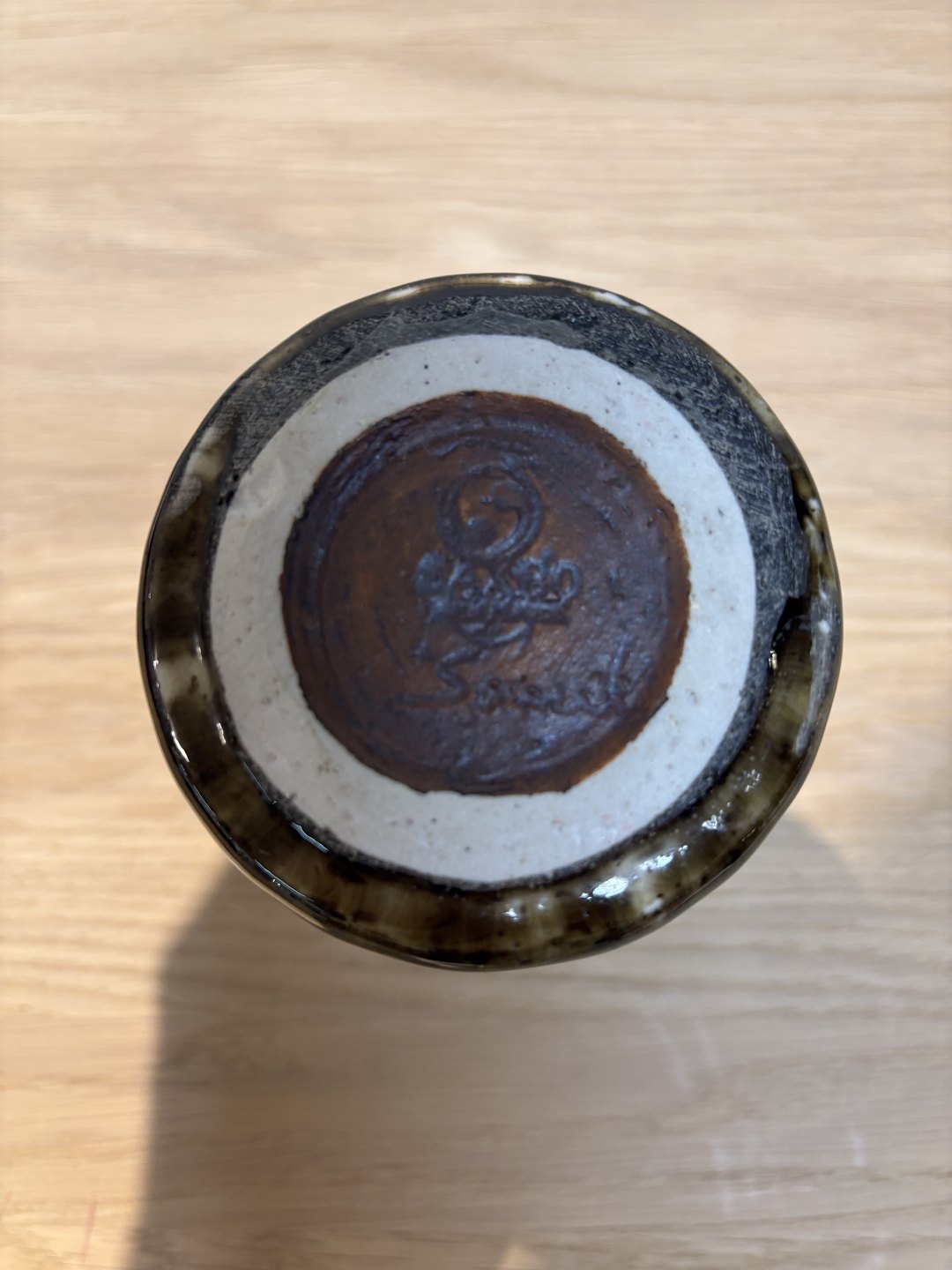 Saxbo krukke i gul glasur. Signeret Sonne. H 13 dia 9,5