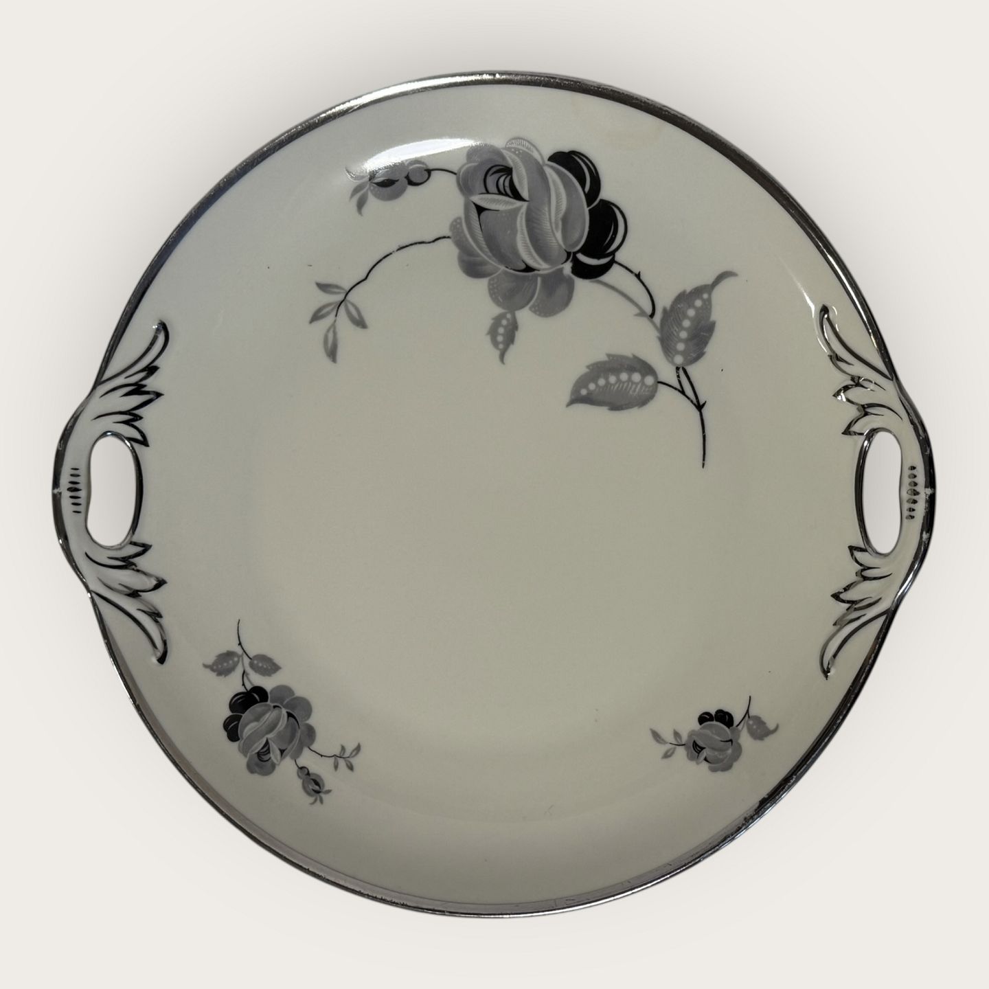 Black rose, with Plantin edge, KPM, Lyngby, Cake dish with handle, Dimensions: 24.5x25.5cm *Good condition*