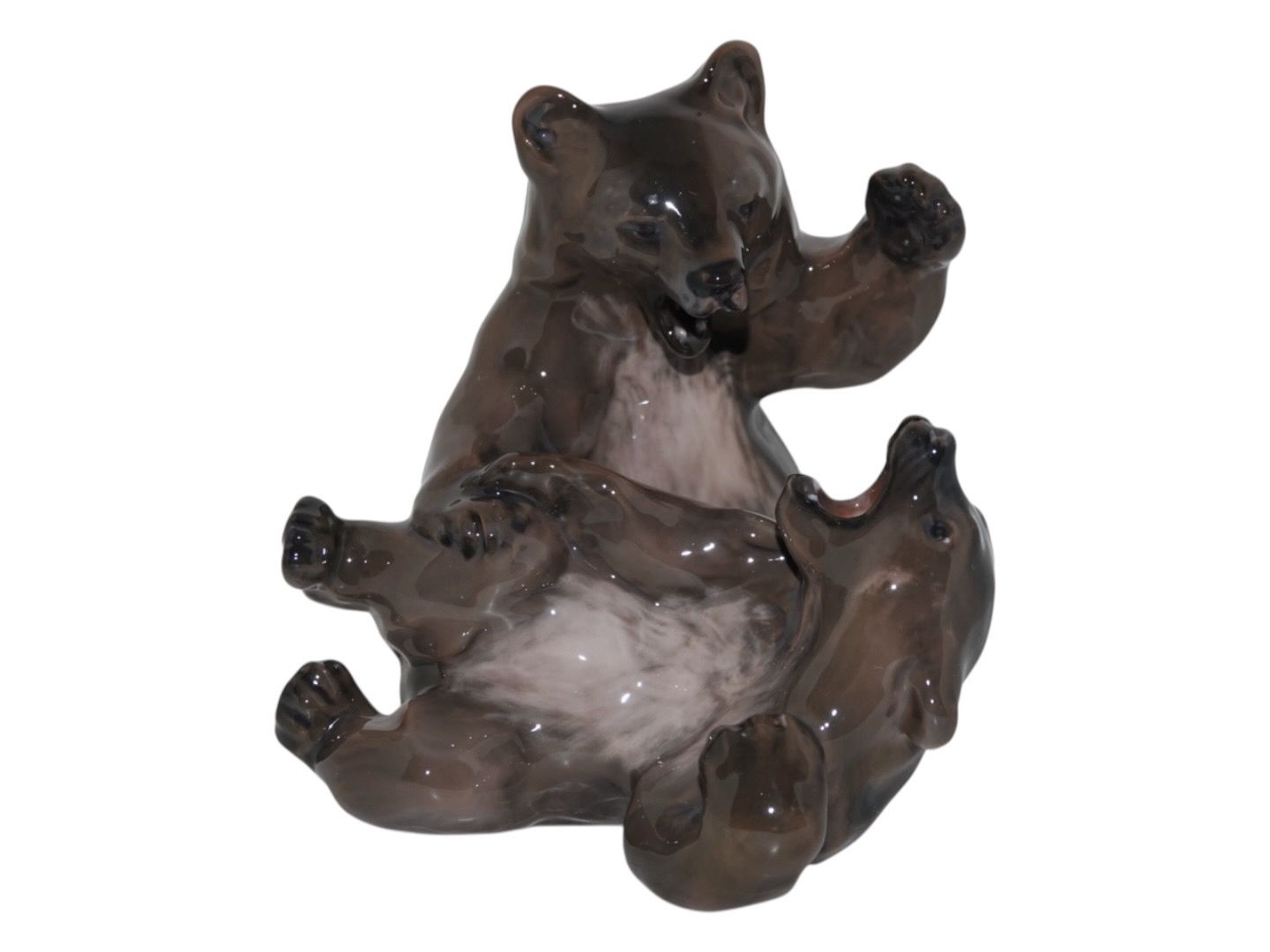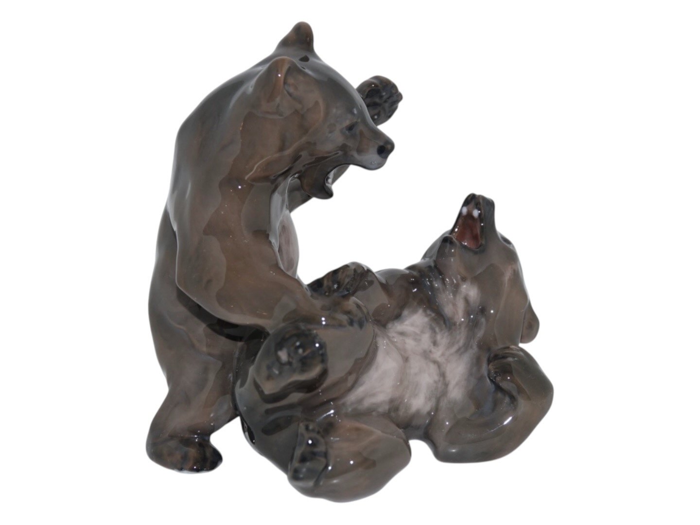 Royal Copenhagen figur, to brune kæmpende isbjørne. Sjælden variant med denne farve.