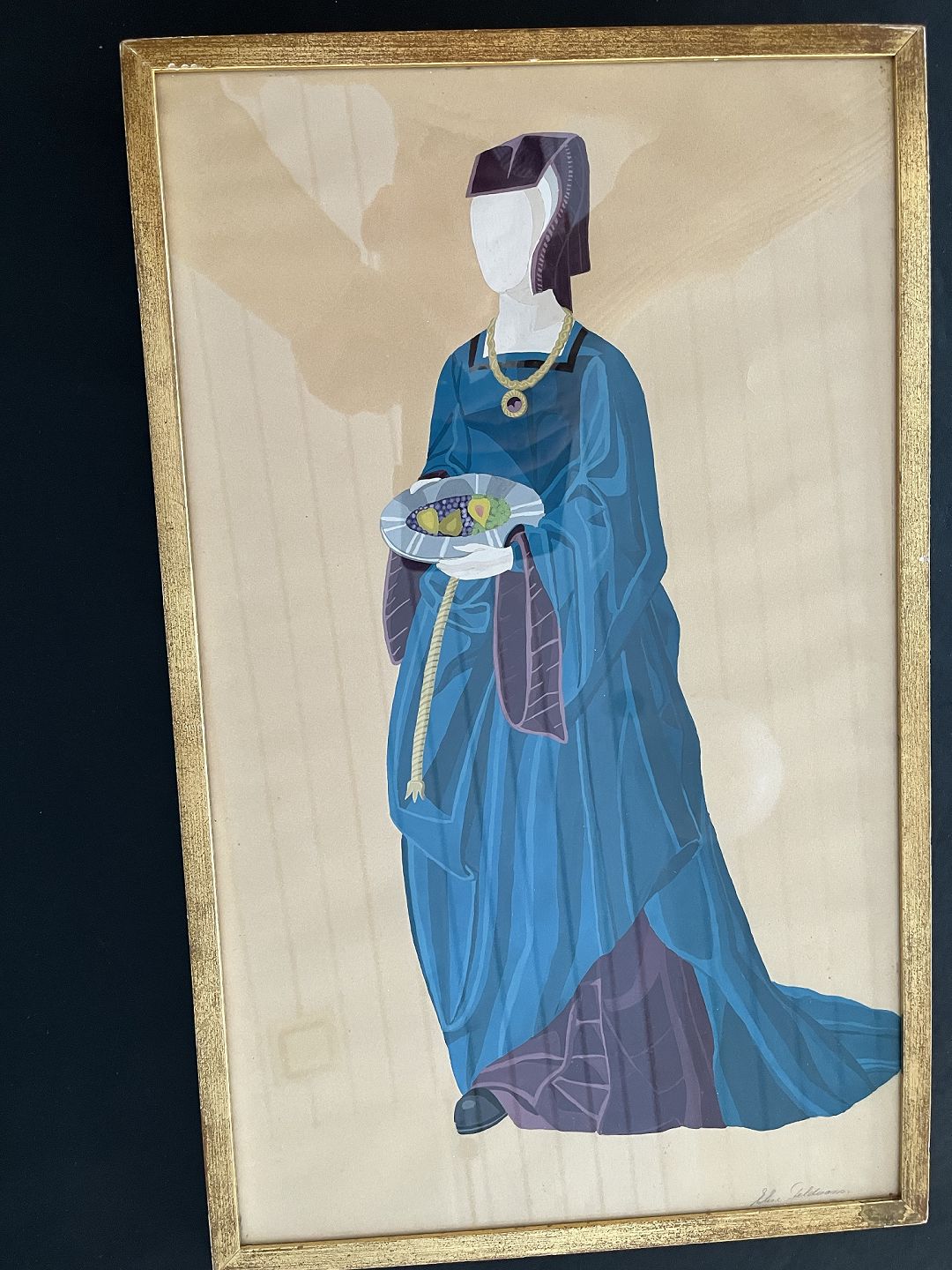 Gouache af Elise Feldvoss - Kvinde i historisk dragt.