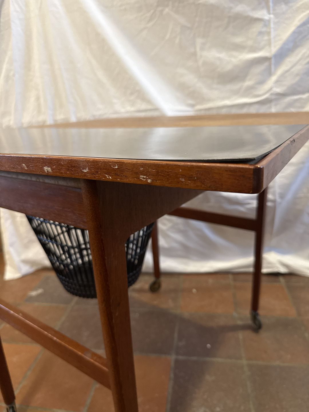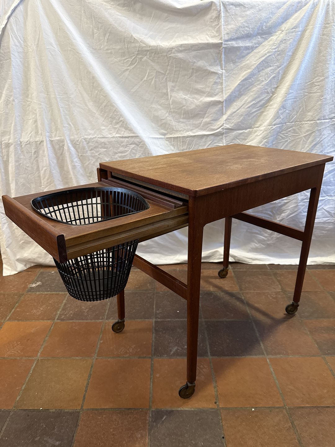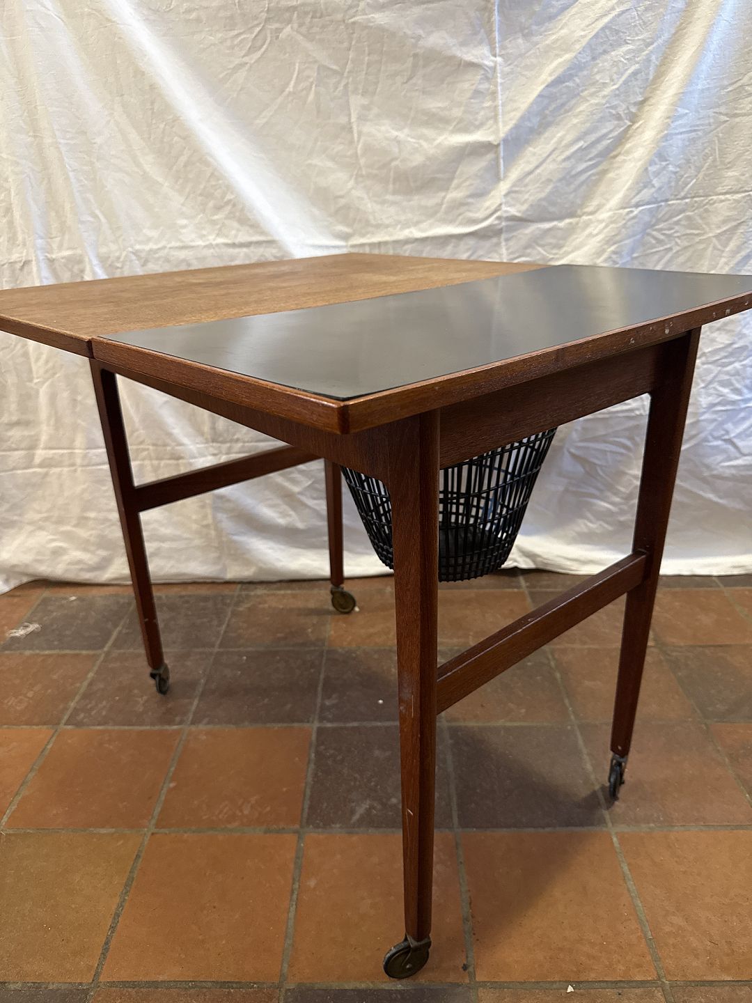 Dansk møbelproducent sybord i fineret teak m. plade i formica.