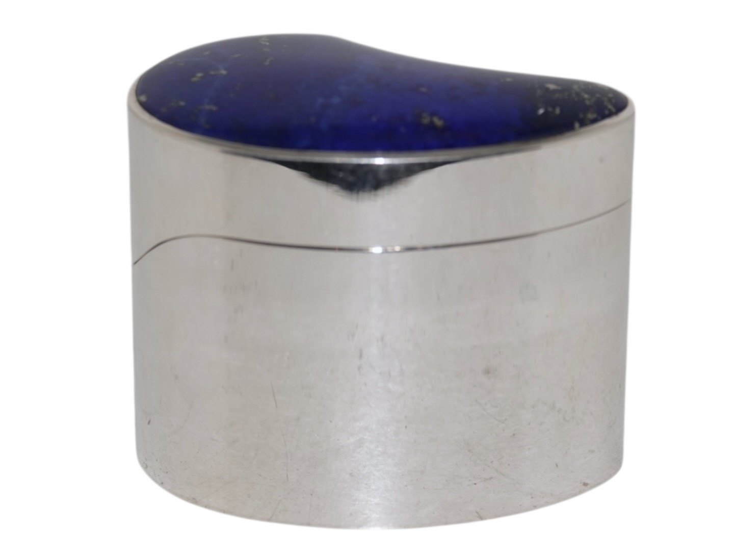 Allan Børge Larsen sterlingsølv, moderne og organisk formet æske med stor blå lapis lazuli sten fra 1970'erne.