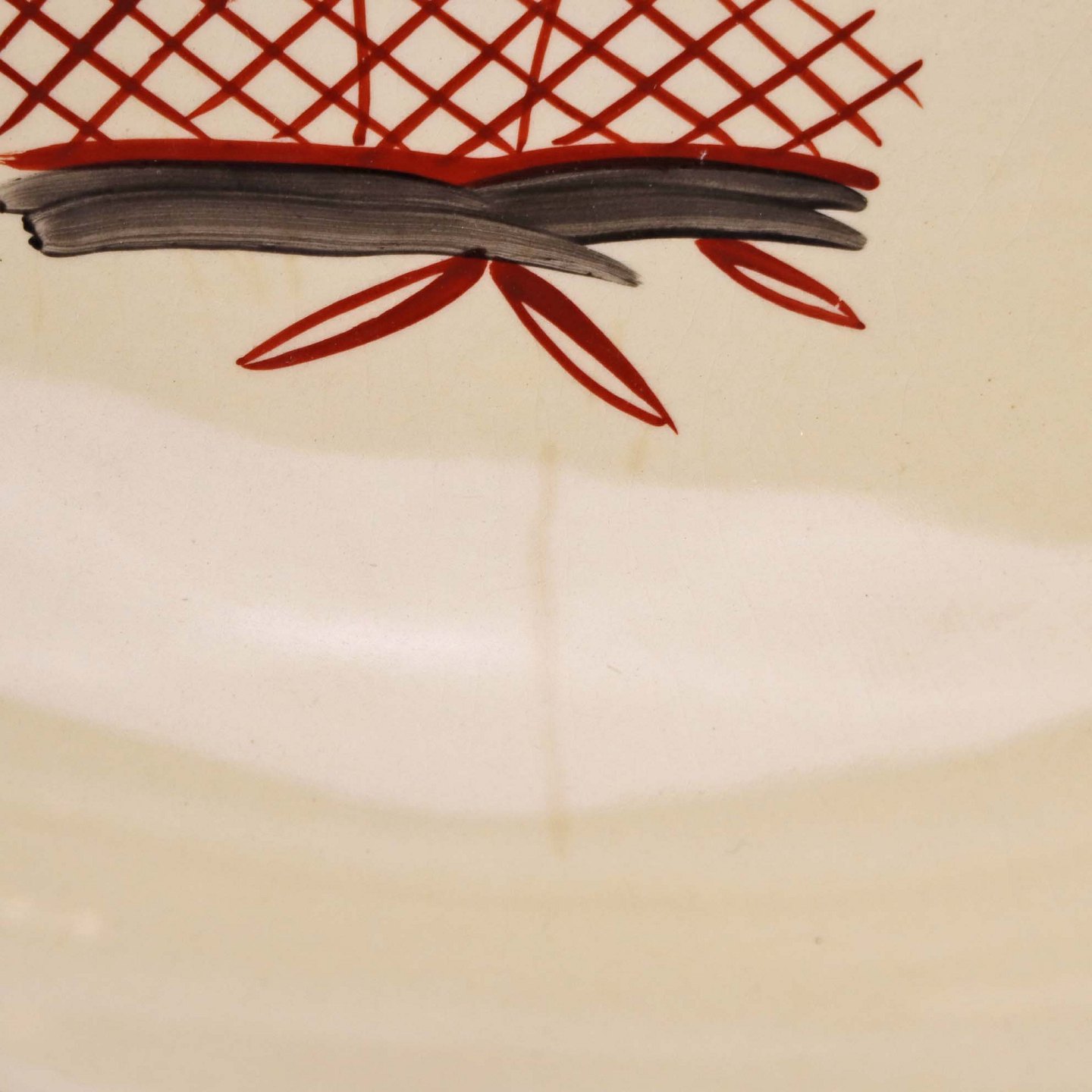 Fremstår med krakeleringer og bruneringer under glasuren.