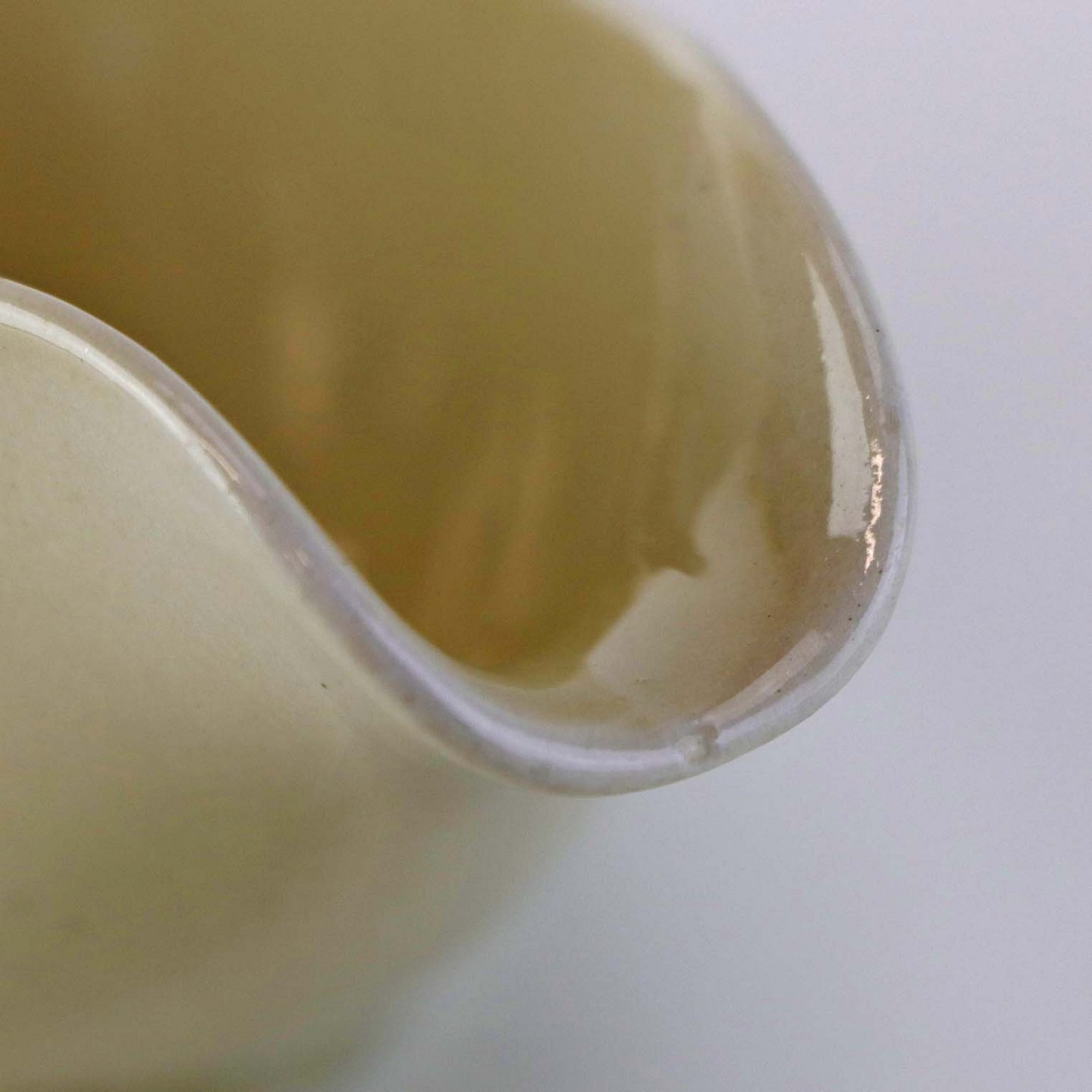 Sandfarvet fajancestel i stelform Viktoria II - Fletværk med dekoration af hvidt flet på gullig baggrund.