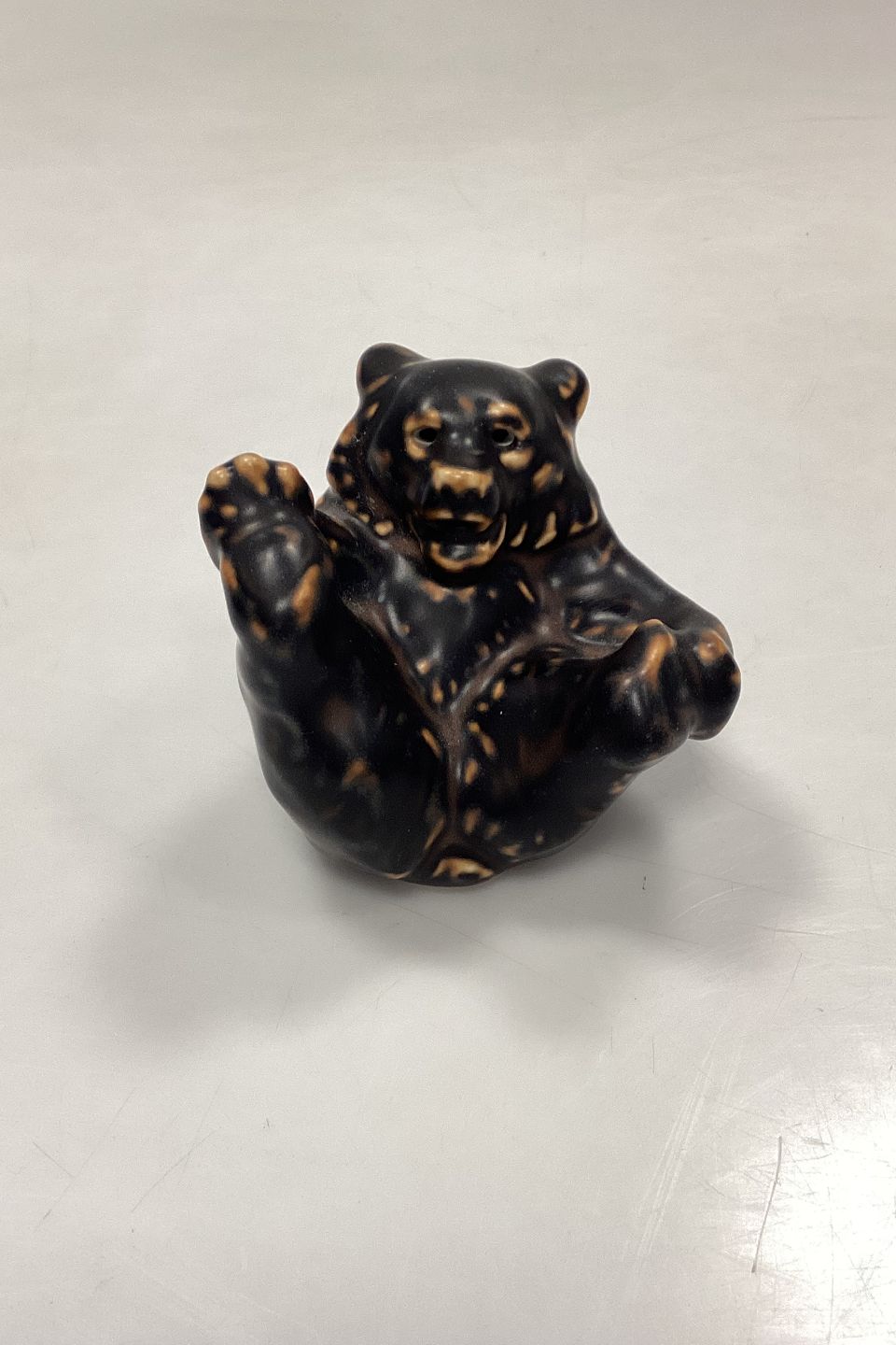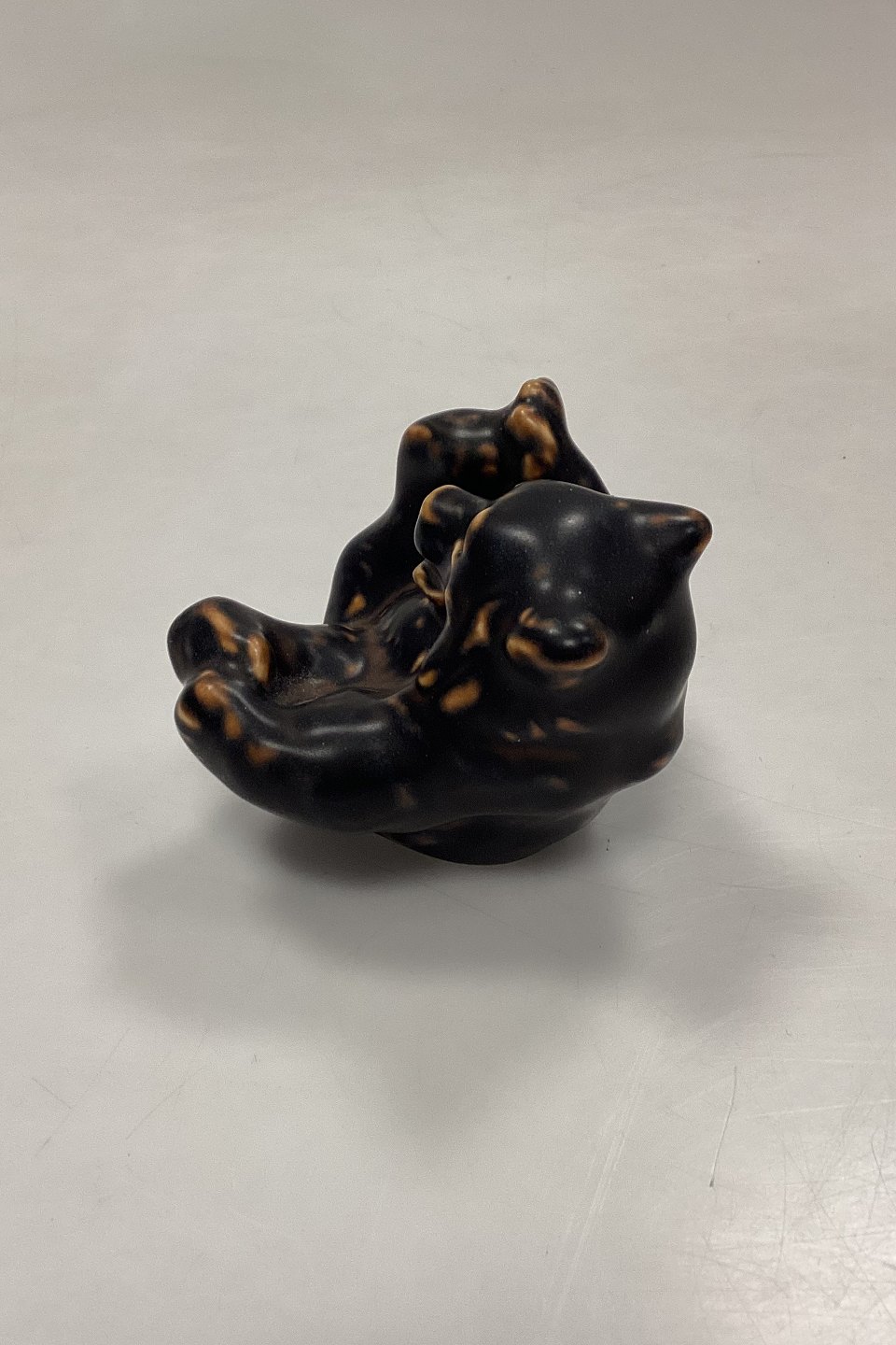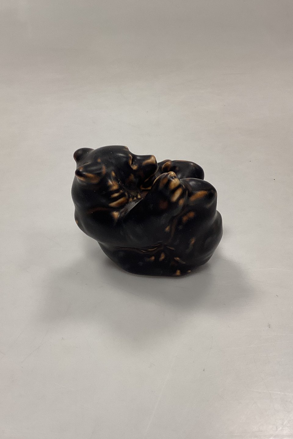 Royal Copenhagen Stentøjsfigur Bjørneunge på ryggen No. 247. Designet af Knud Kyhn.